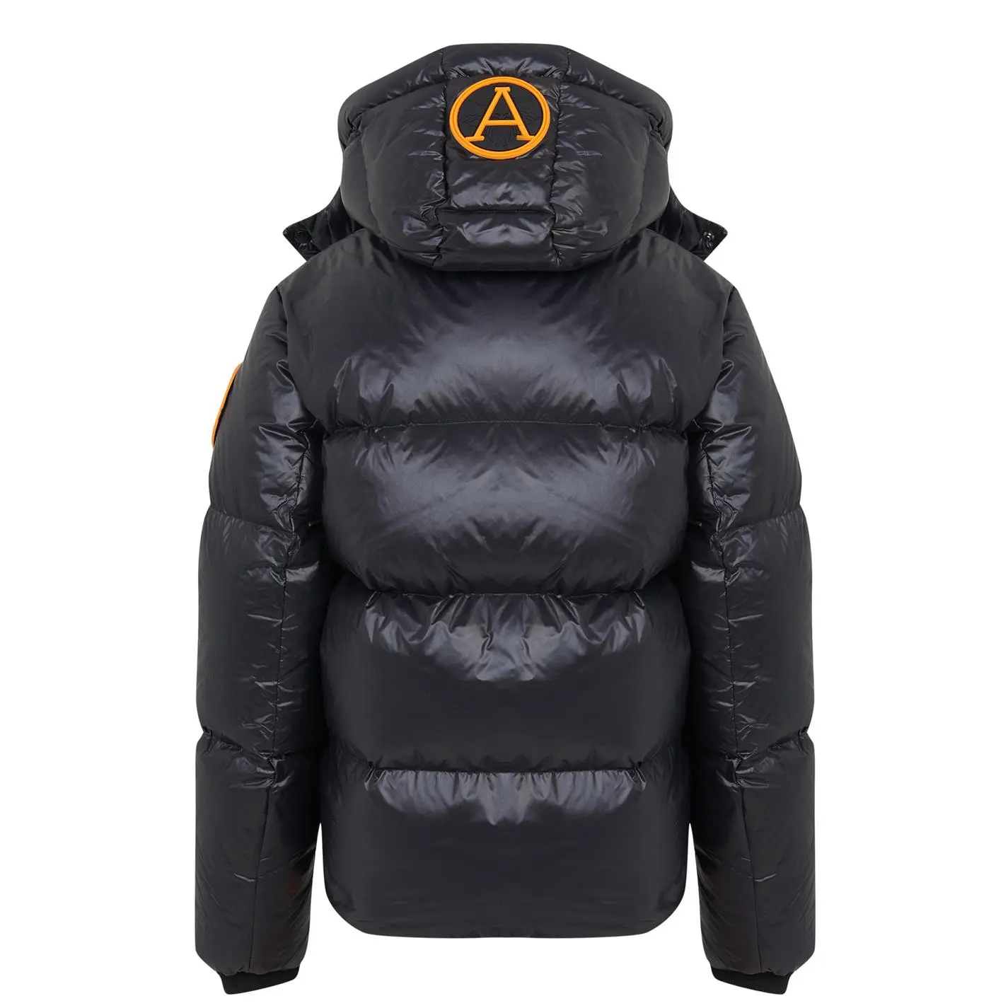 Keep your little urban explorer warm with this Junior Puffer Jacket from arctic Army. Expertly constructed from a feather-light, glossy nylon ciré composition and filled with a responsibly sourced down filling for comfort, this sleek silhouette features a detachable hood with press stud fastenings, a central zip fastening, quilted stitching, long sleeves with heavy rib cuffs, adjustable hem toggles, two fleece lined pockets to the exterior and a press-stud compartment to the interior. Decorated in a solid block colour for versatile styling, the design is elevated with the Arctic Army’s ‘A’ badge rendered in silicone to the hood and upper left sleeve for instant brand recognition. Fabric: 100% nylon. Dry Clean Only – always refer to and follow washing instructions for best wear.