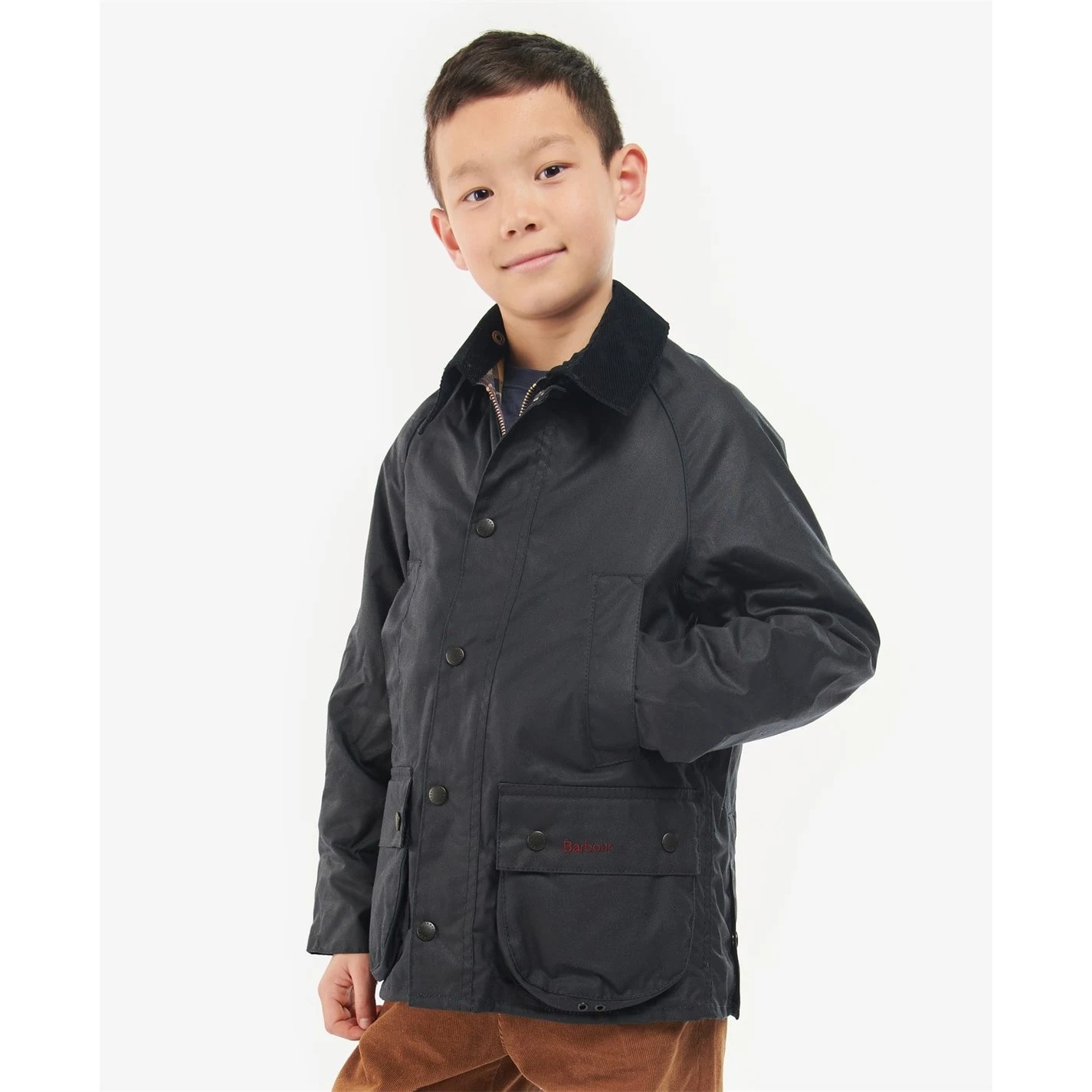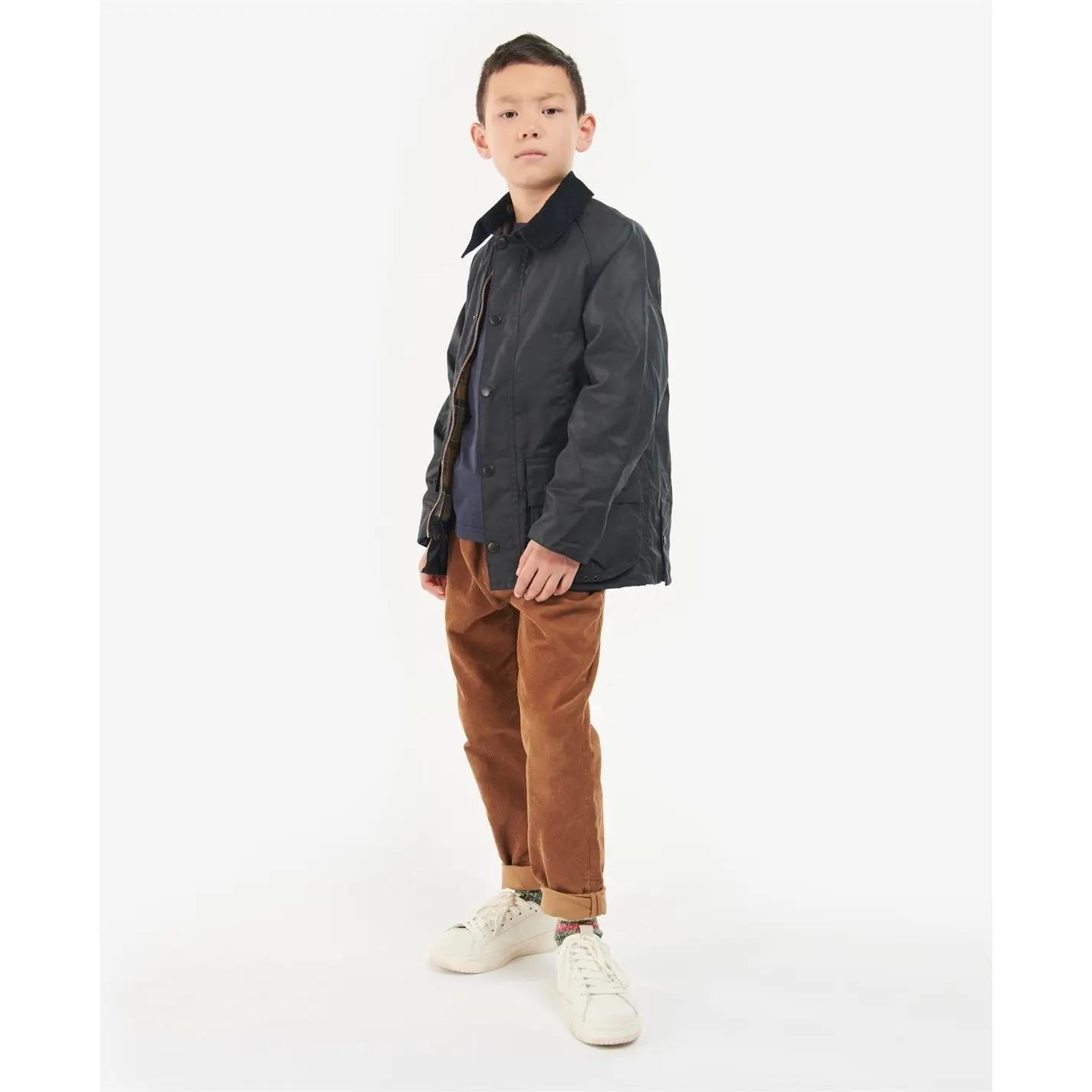 The iconic Barbour wax jacket, the Beaufort has been scaled down to make a mini-me version especially for boys, featuring all the same classic details. Made with a mediumweight Sylkoil wax, the boys’ Beaufort is extremely water-resistant and great for winter, with a traditional corduroy collar that’s interactive with the wax hood for extra weather protection. Just like its big brother, the mini Classic Beaufort features a chunky Barbour zip, snap-close stormfly front, multiple pockets including moleskin-lined handwarmer pockets and the handy large rear game pocket, and a classic cotton tartan lining.