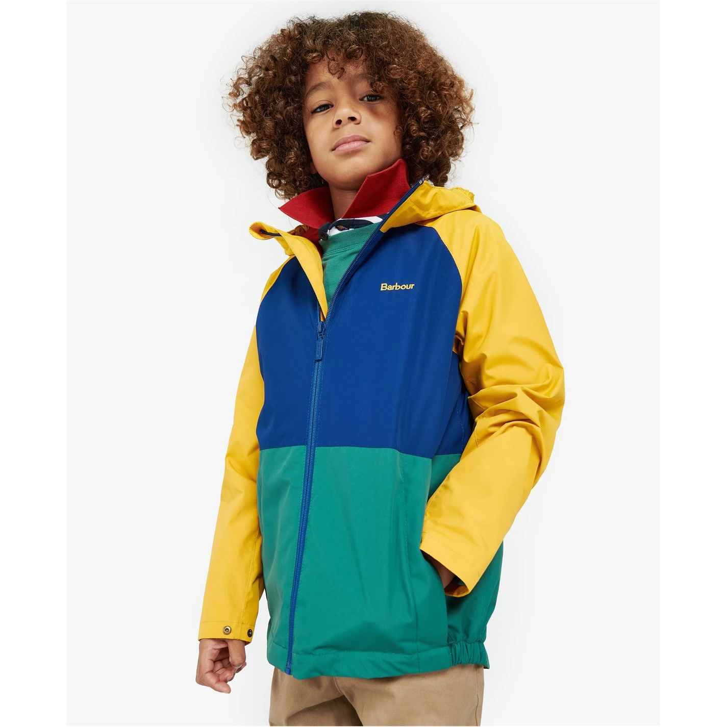 This Barbour showerproof jacket features a snug hood and front zip fastening to keep little ones warm. This style is designed with side pockets for handy storage space and adjustable cuffs. Kids will love this garment worn over sweatshirts and with jeans this season.
