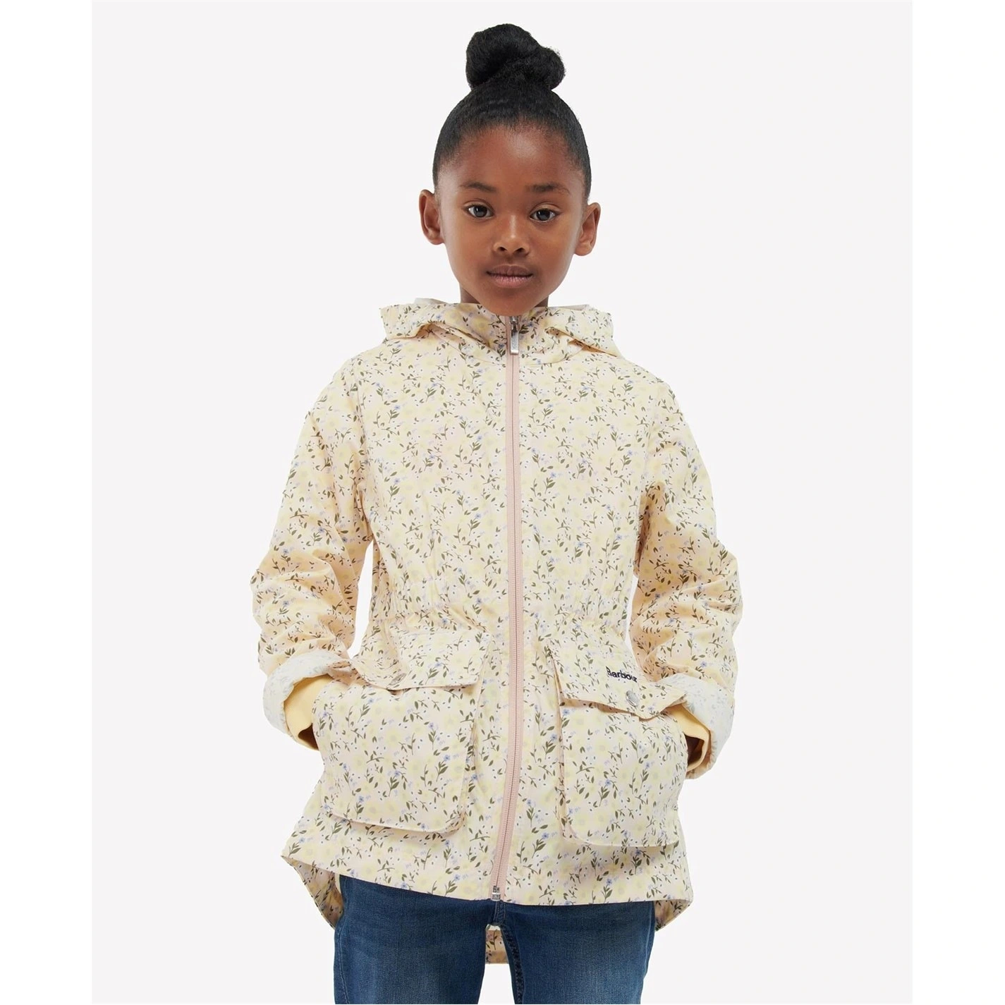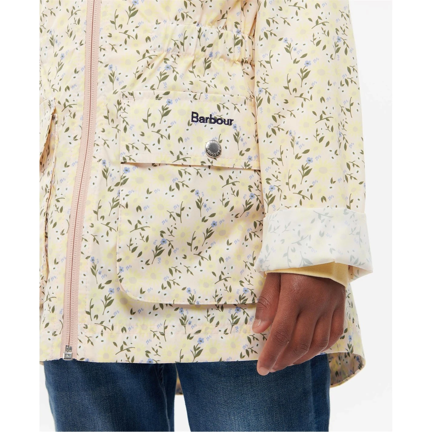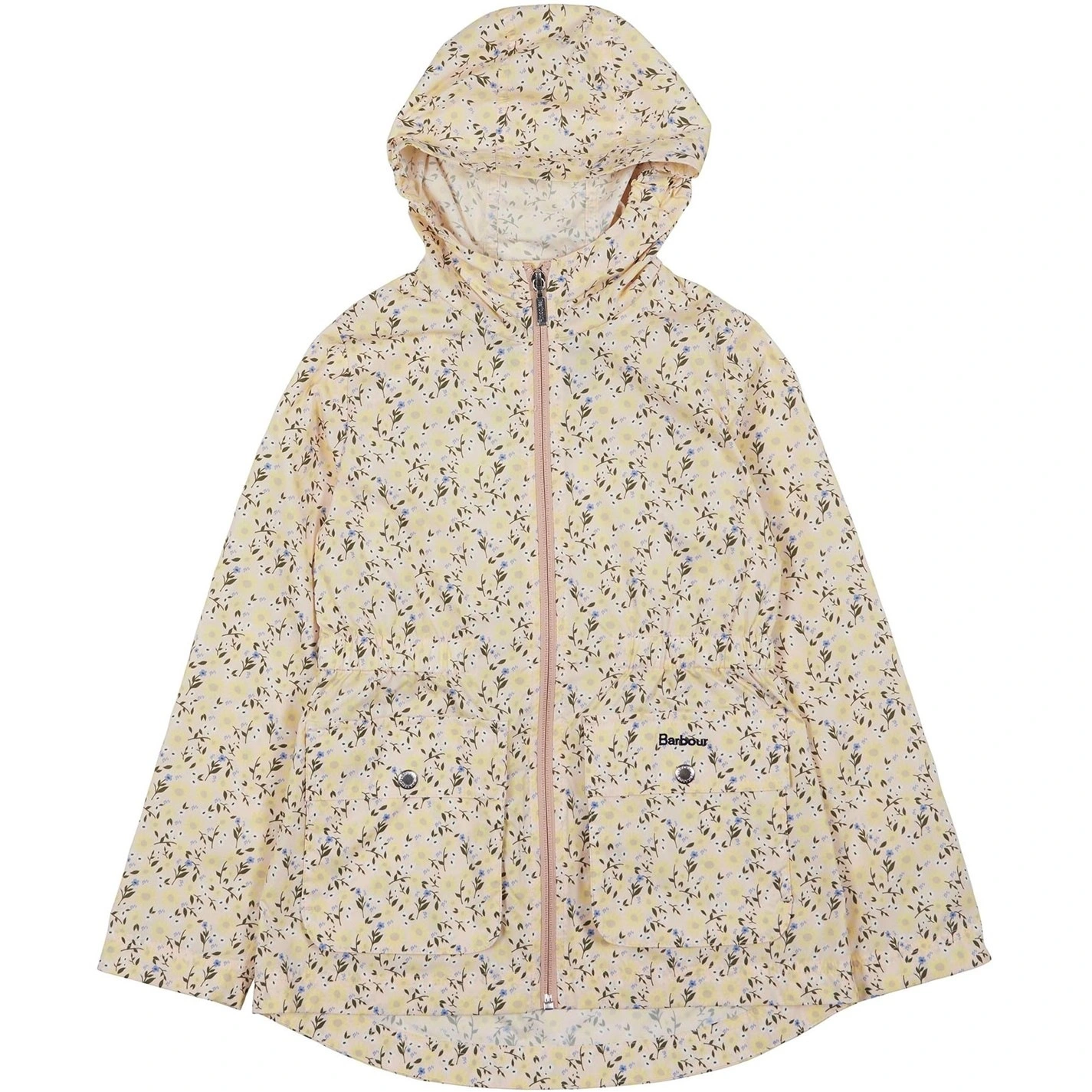This Barbour showerproof jacket is made with a snug hood and a front zip fastening to kids warm. This all-over printed style is designed with a lightweight feel and large front pockets for handy storage space. Kids will love this garment worn over sweatshirts and with jeans this season.