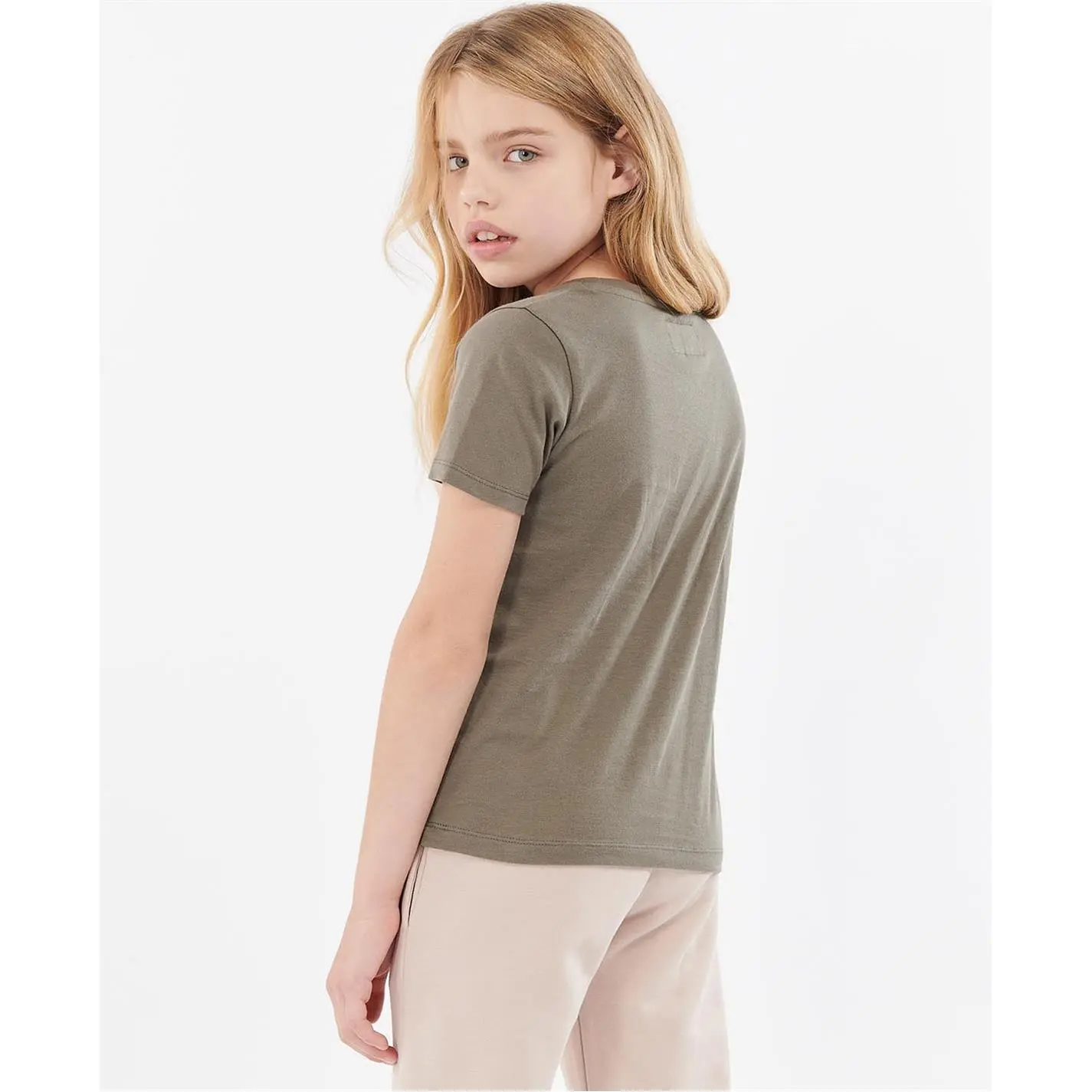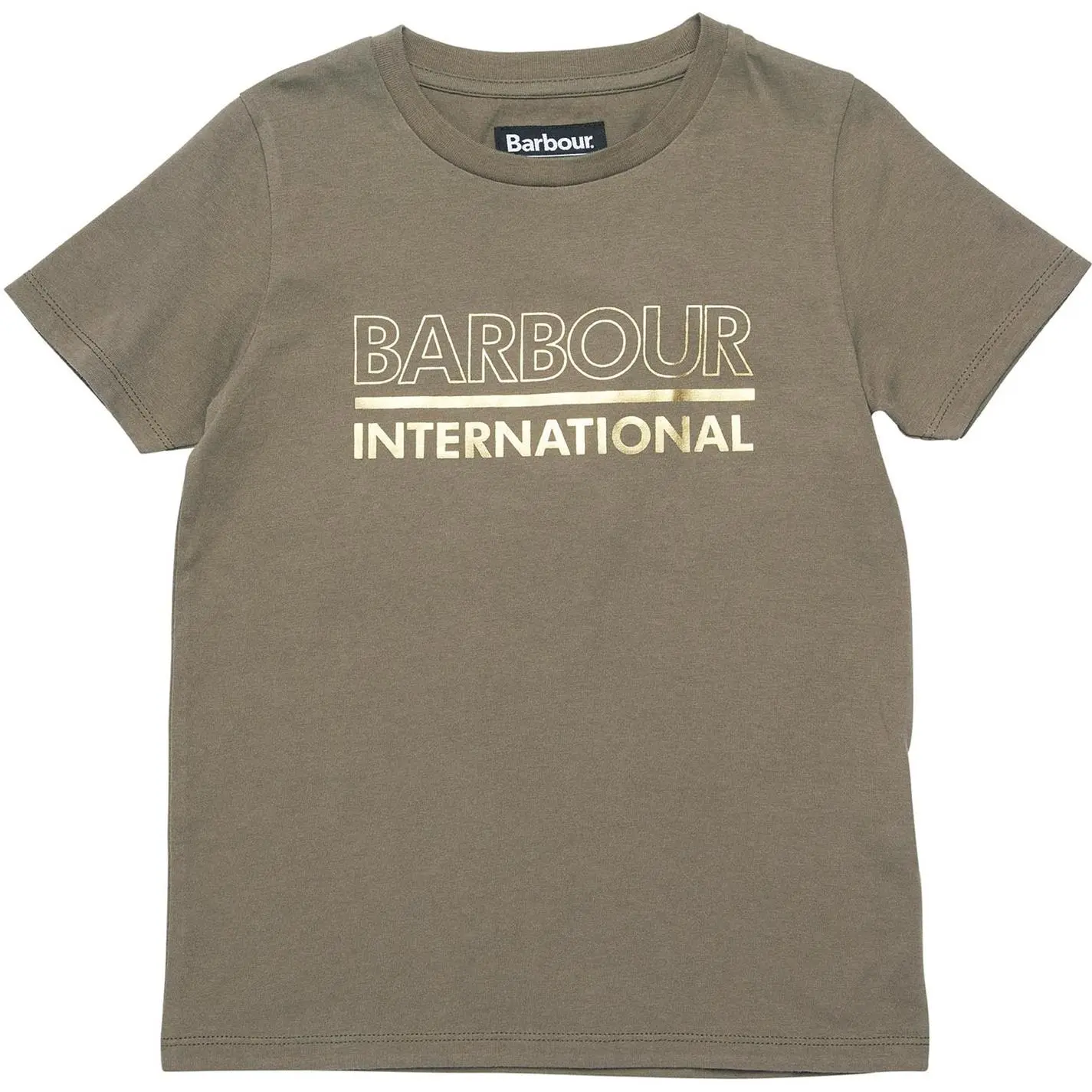 The Barbour International Girls Morgan T-Shirt boasts a short sleeve design with a Barbour International foil graphic to the chest, crafted from 100% cotton, this t-shirt offers a timeless wardrobe staple for your little one.