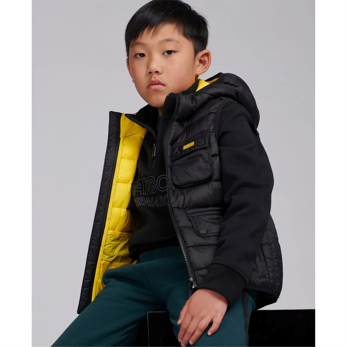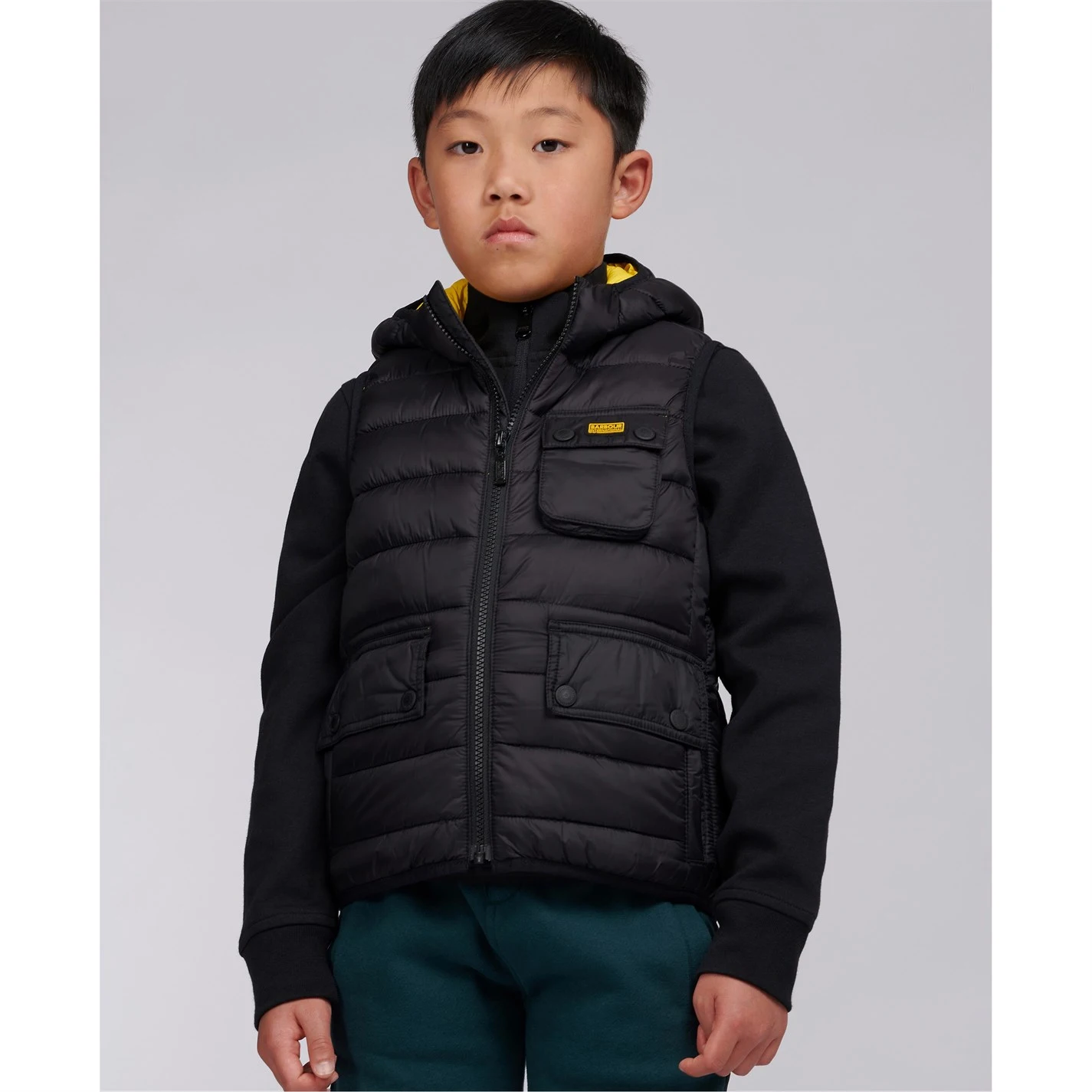 The Barbour International Ouston hooded gilet is the perfect layer for walks in the fresh air. Featuring a fixed hood and front zip fastening, this gilet offers essential warmth with a lycra bound hood, hem and arholes for comfortable wearing.