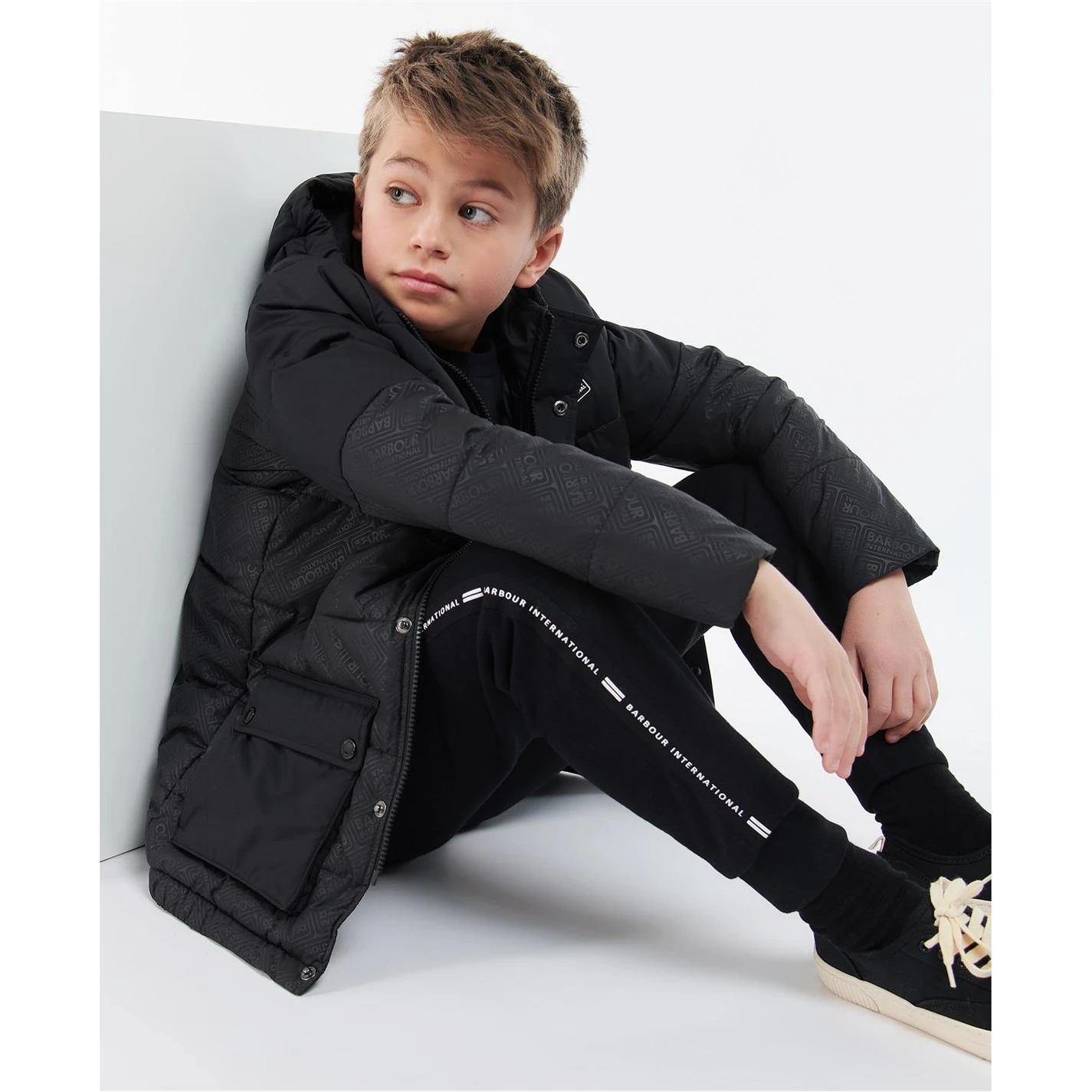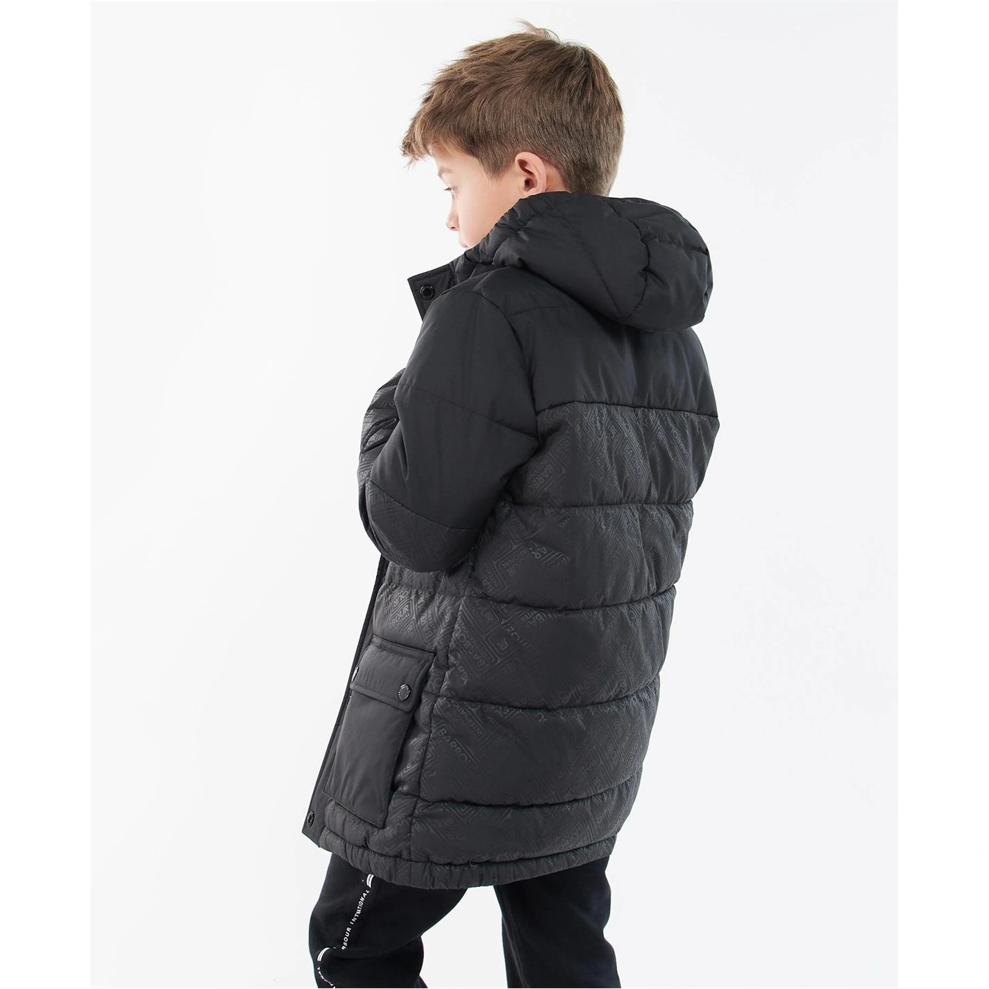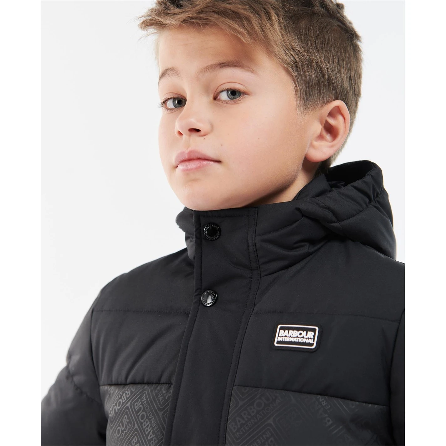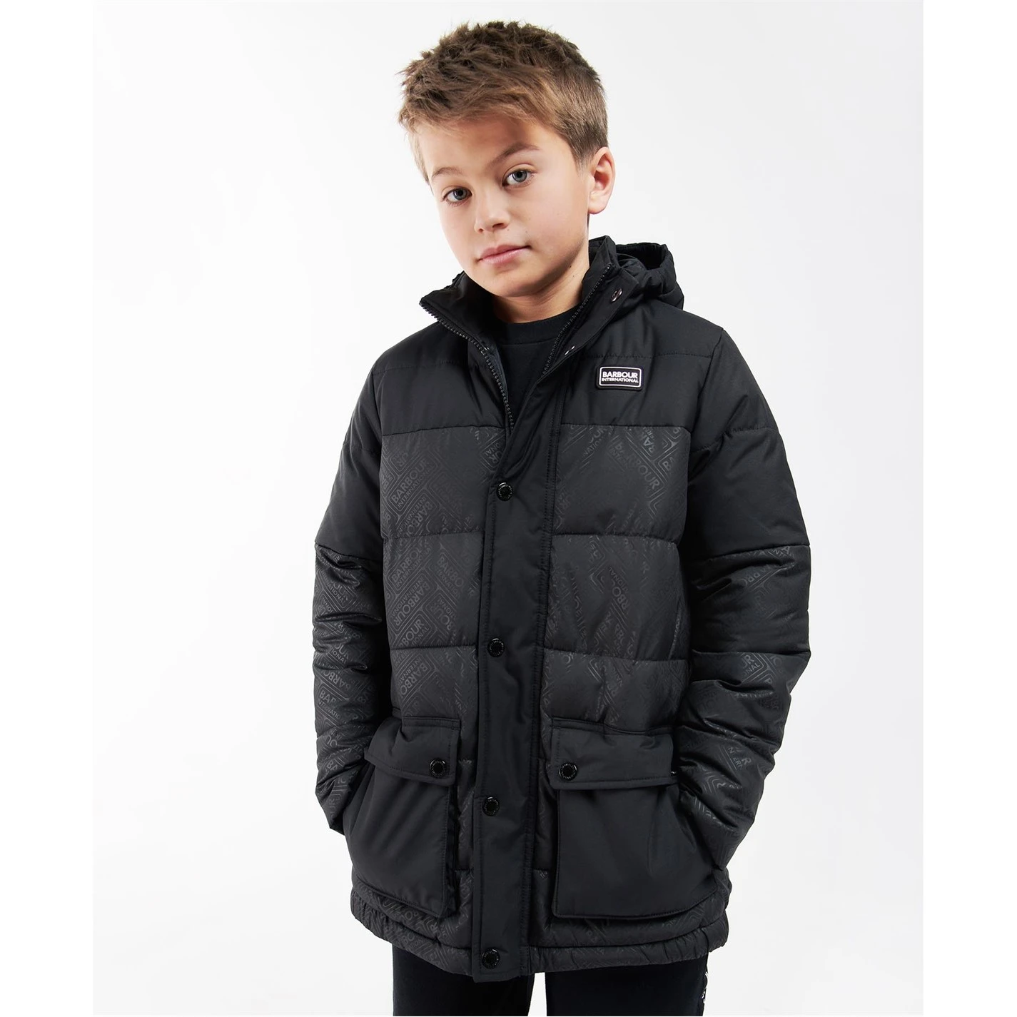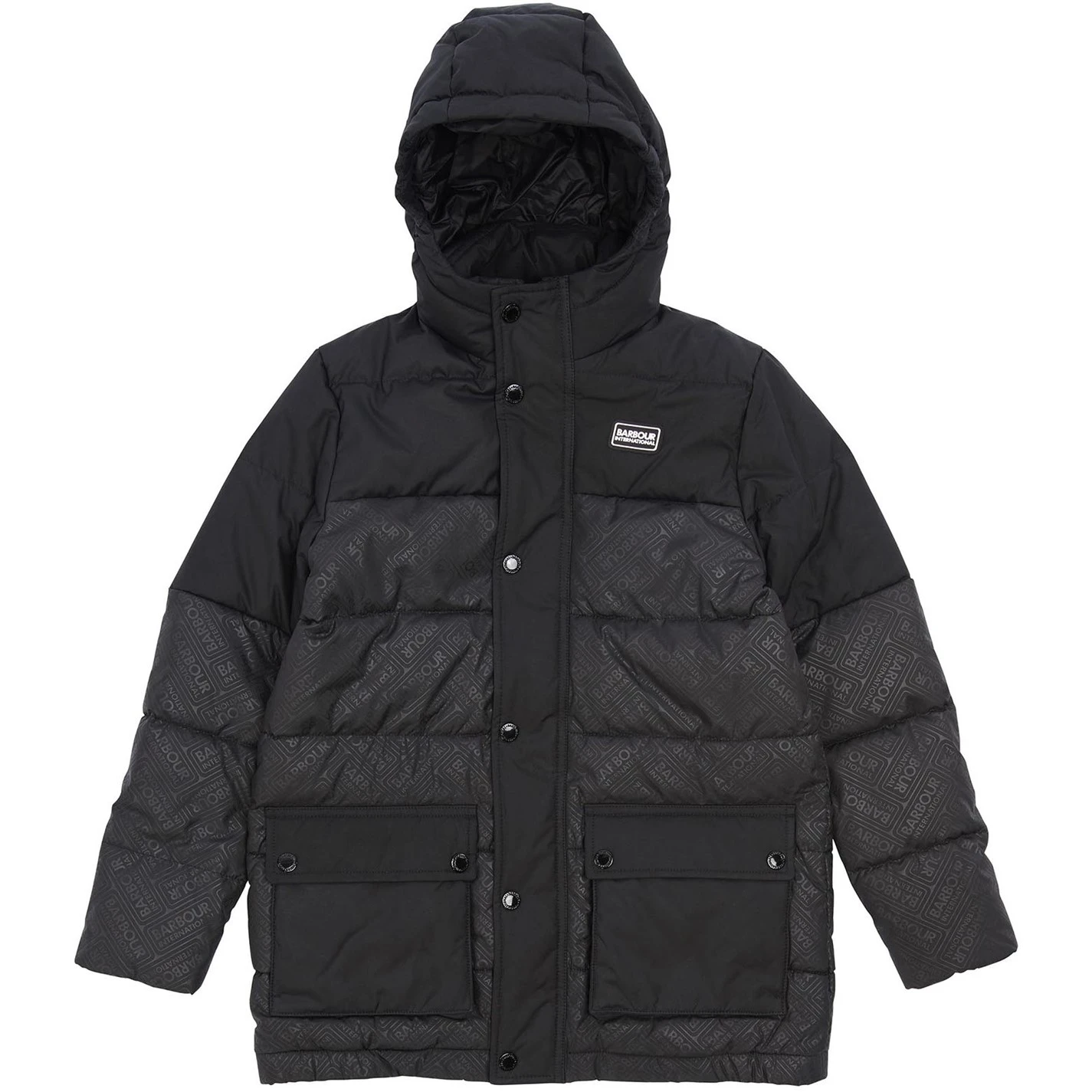 The Barbour International Redford Hooded Baffle Quilted Jacket features a fixed hood, zip fastening and stud front placket. This style boasts an International embossed print lower body and lower patch pockets with side entry.