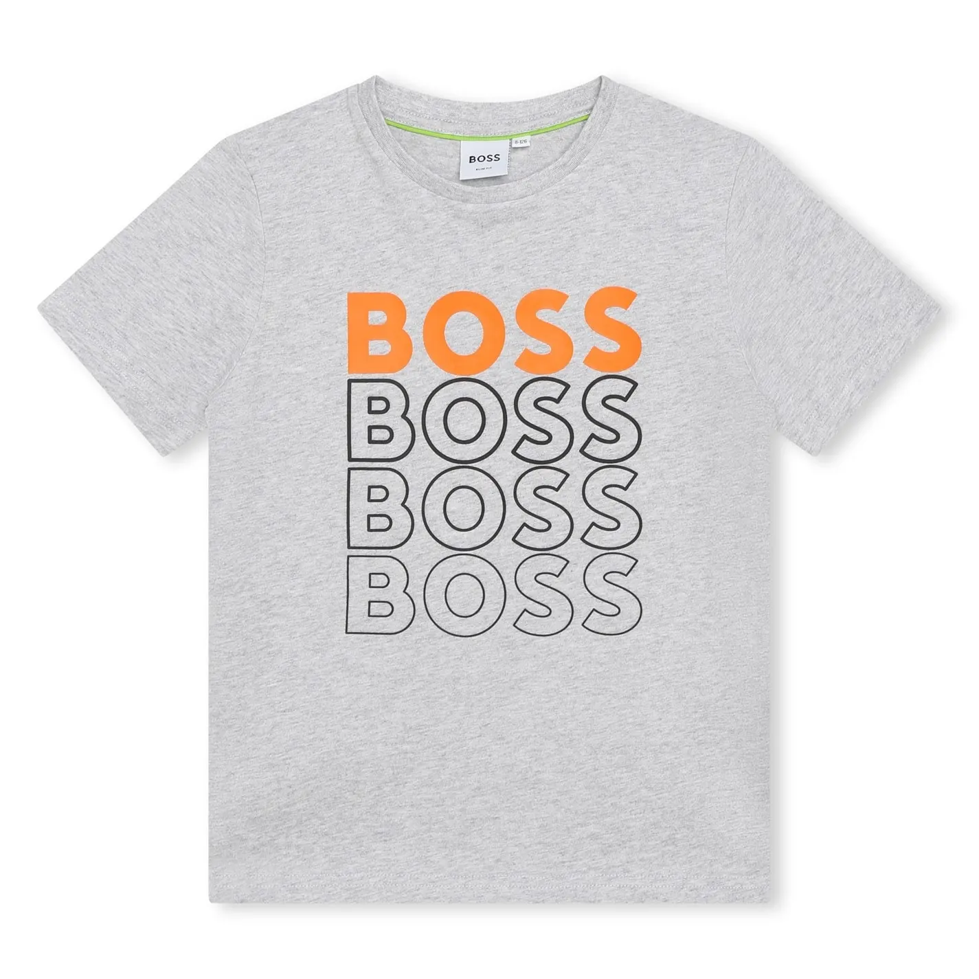 Switch up your little ones casual attire with this stylish number from Boss. Crafted in a regular fit with short sleeves, a crew neck and ribbed trims for added comfort. There is standard block colour all over with branding shown to the chest, delivering instant brand recognition wherever you may go.