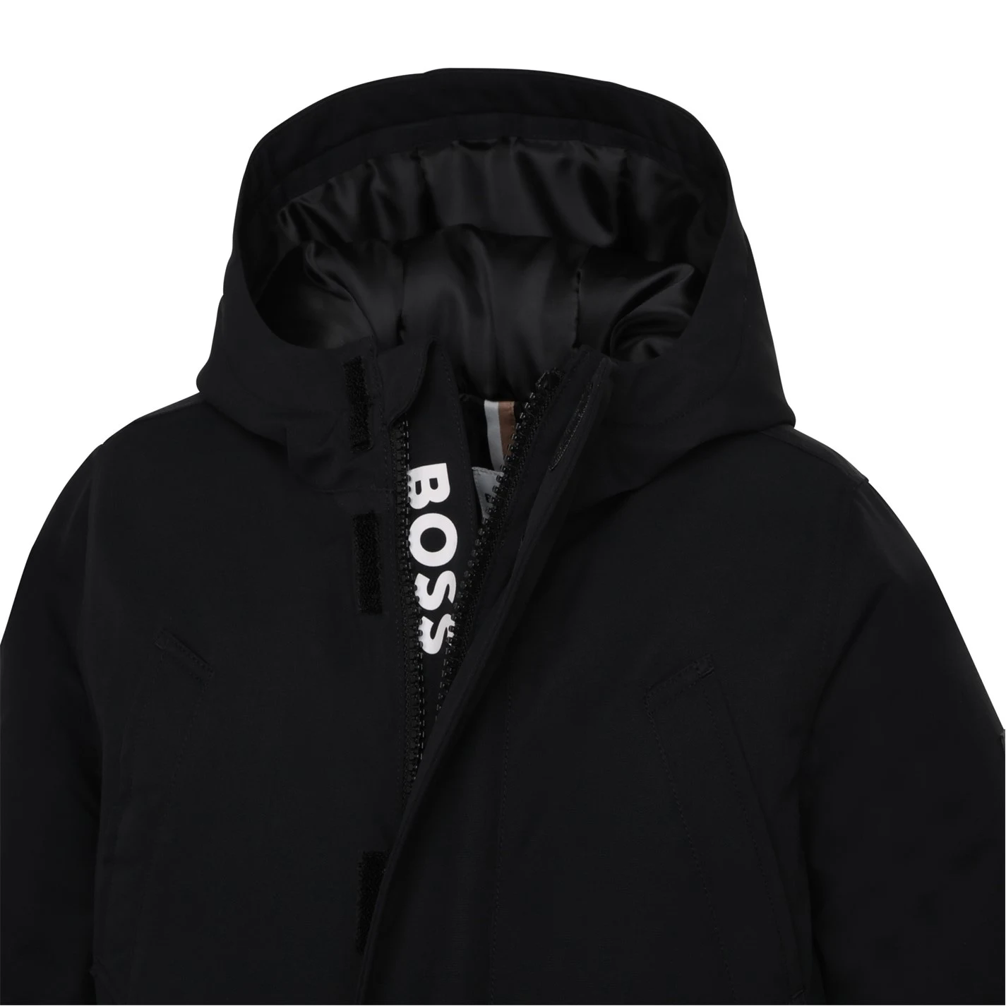 Enhance your collection with this BOSS Parka Jacket. Constructed with full zip fastening and long sleeves for a secure fit, it features a hooded neckline and two hand pockets for a classic look. This jacket is a solid colouring throughout designed with a signature logo and is complete with BOSS branding.