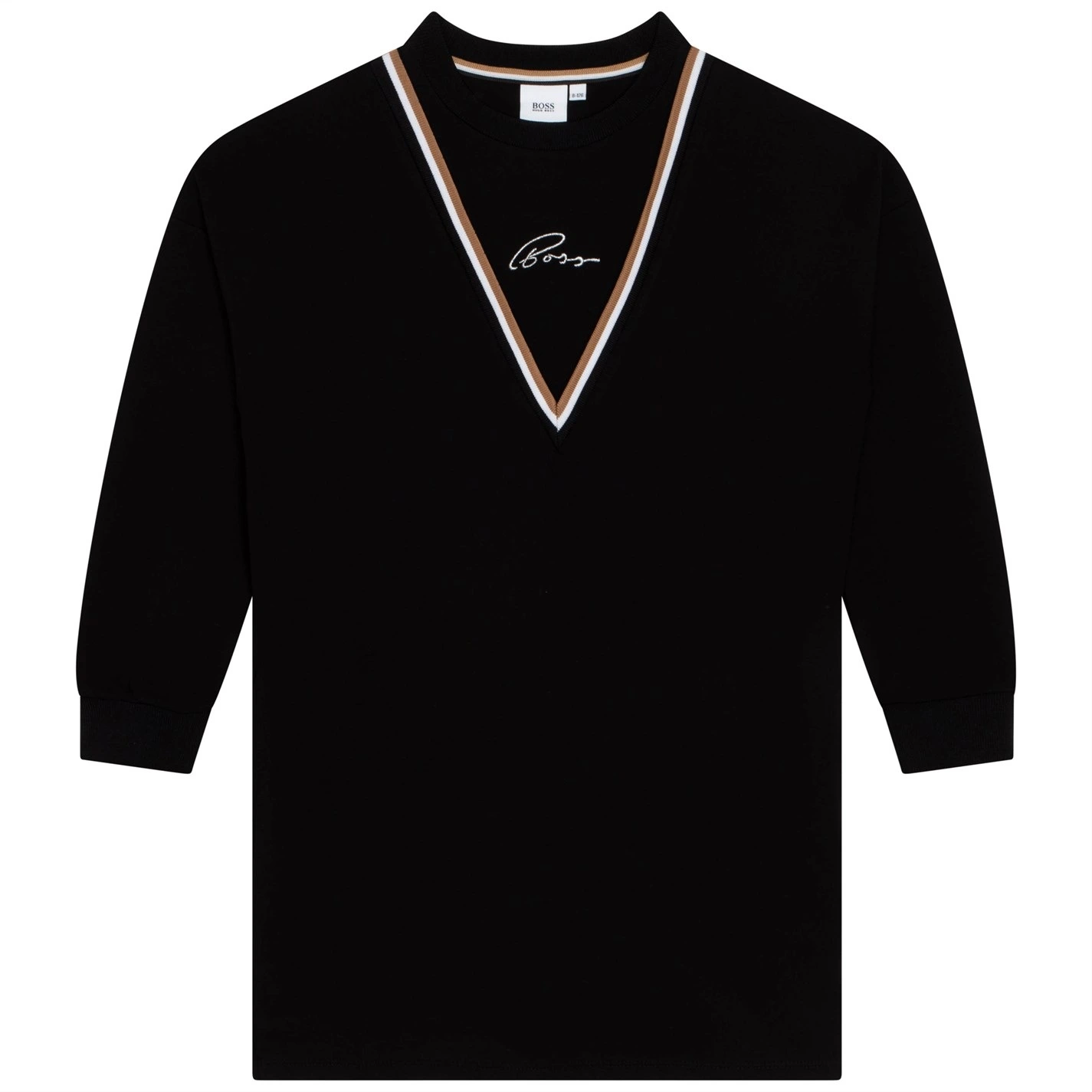 Refresh your collection with this BOSS Signature Logo Dress. Constructed with long sleeves and a ribbed crew neckline for a classic look, it features elasticated hems for a comfortable fit. This dress is a solid colouring throughout designed with stripe detailing plus a signature logo and is complete with BOSS branding.