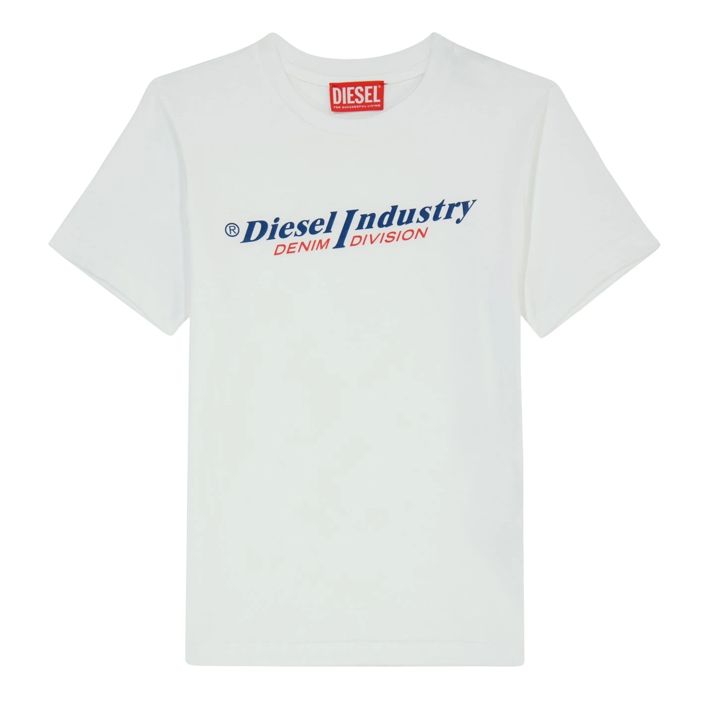 Switch up your casual t-shirt collection with this T Shirt from Diesel. This quality cotton t-shirt has been crafted in a regular fit with short sleeves, a crew neckline and a ribbed collar. There is block colour with a text design along the side and chest with Diesel branding to complete the look.