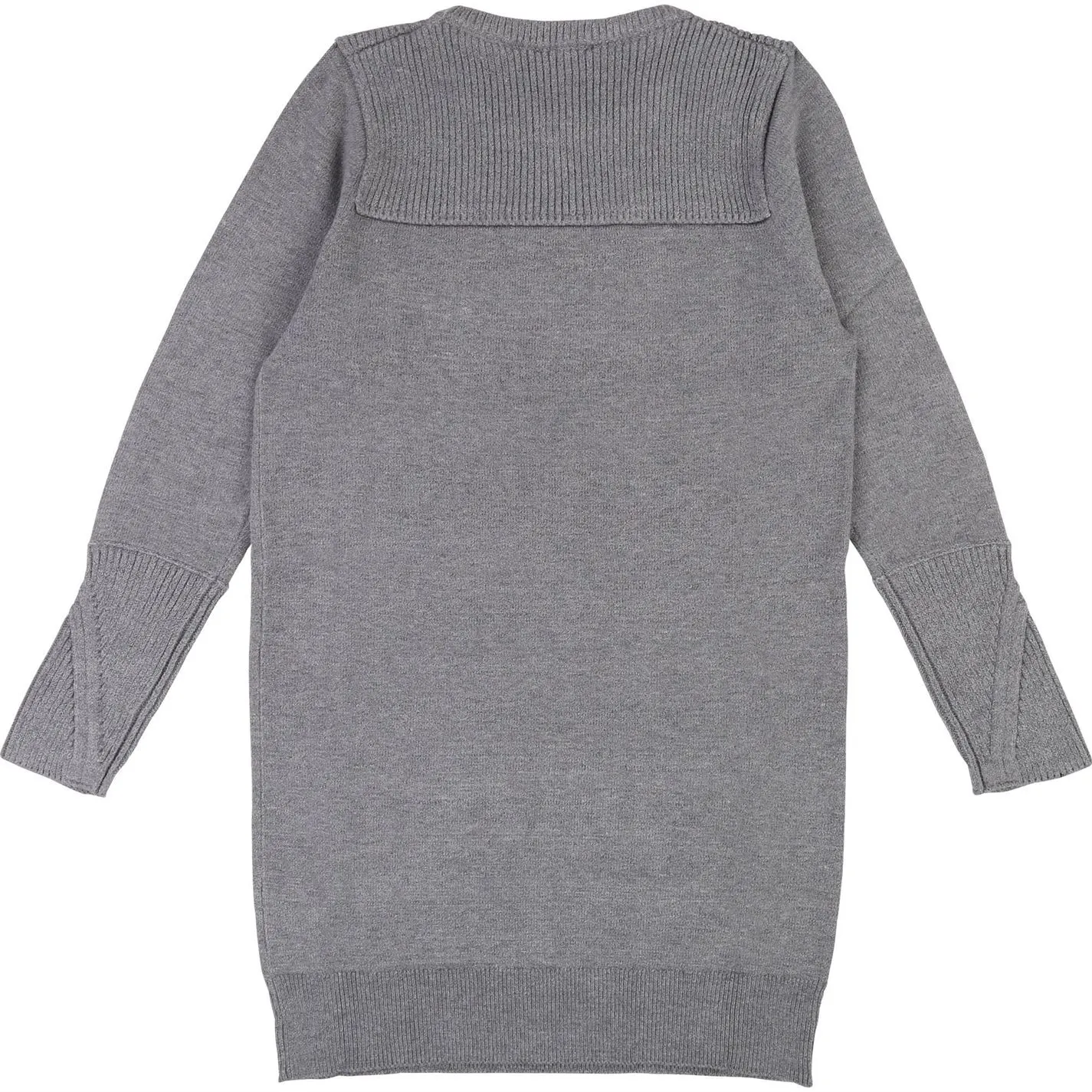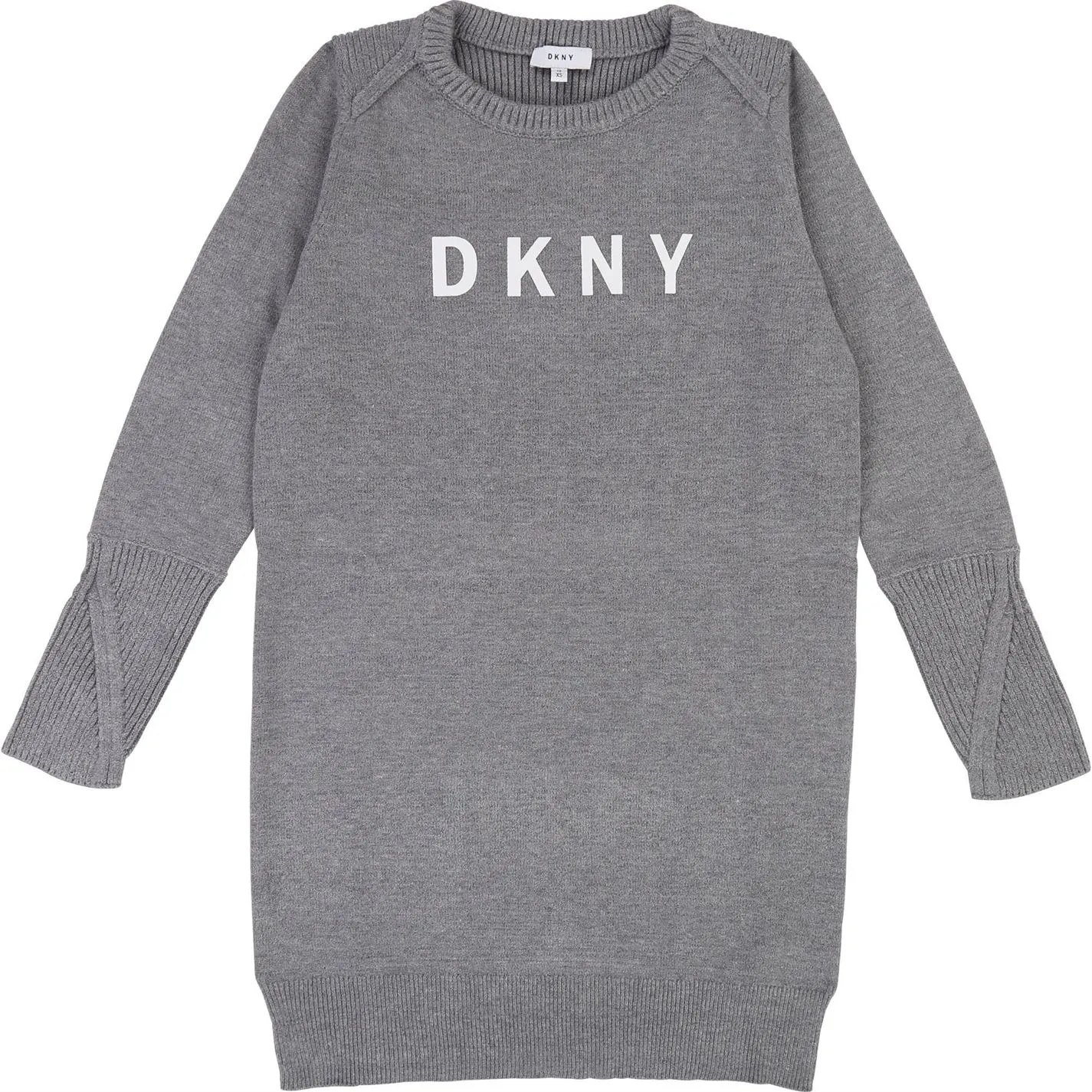 54% viscose 25% polyester 21% polyamide, knitted dress with DKNY logo in Jacquard on the front, fancy stitch on shoulders and bottom on sleeves.