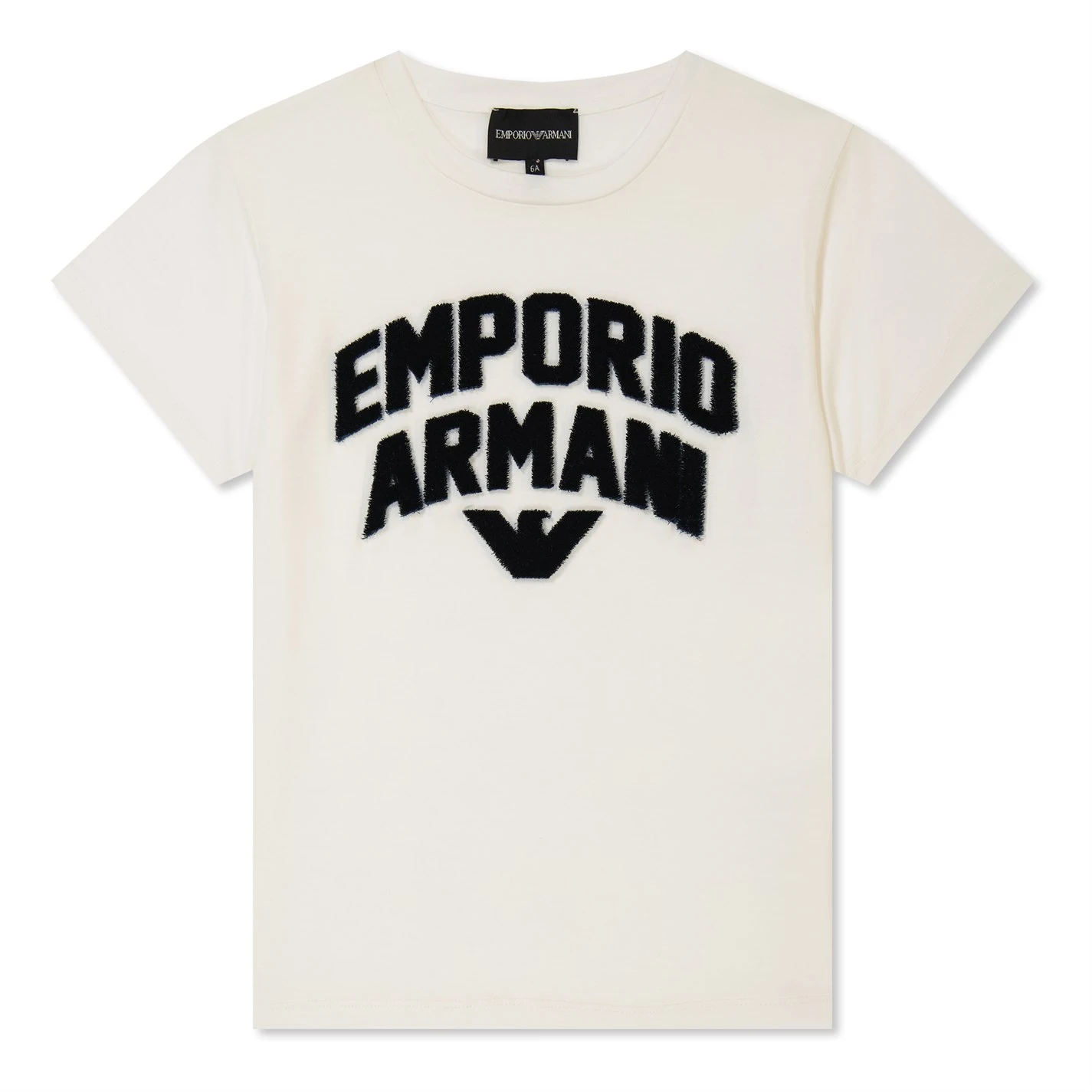 Elevate your youngsters attire with this trendy t-shirt from Emporio Armani. Comprised of a lyocell, cotton blend this top boasts extra stretch, short sleeves and classic crew neck style, for a comfortable wear. The off white design is decorated with the brands name and iconic eagle motif so brand recognition can be easily achieved. Hand wash, maximum 40 degrees.
