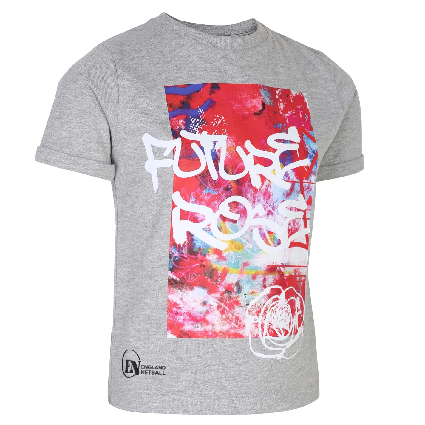 England Netball Future Graffiti Roses text repeat T-shirt:
