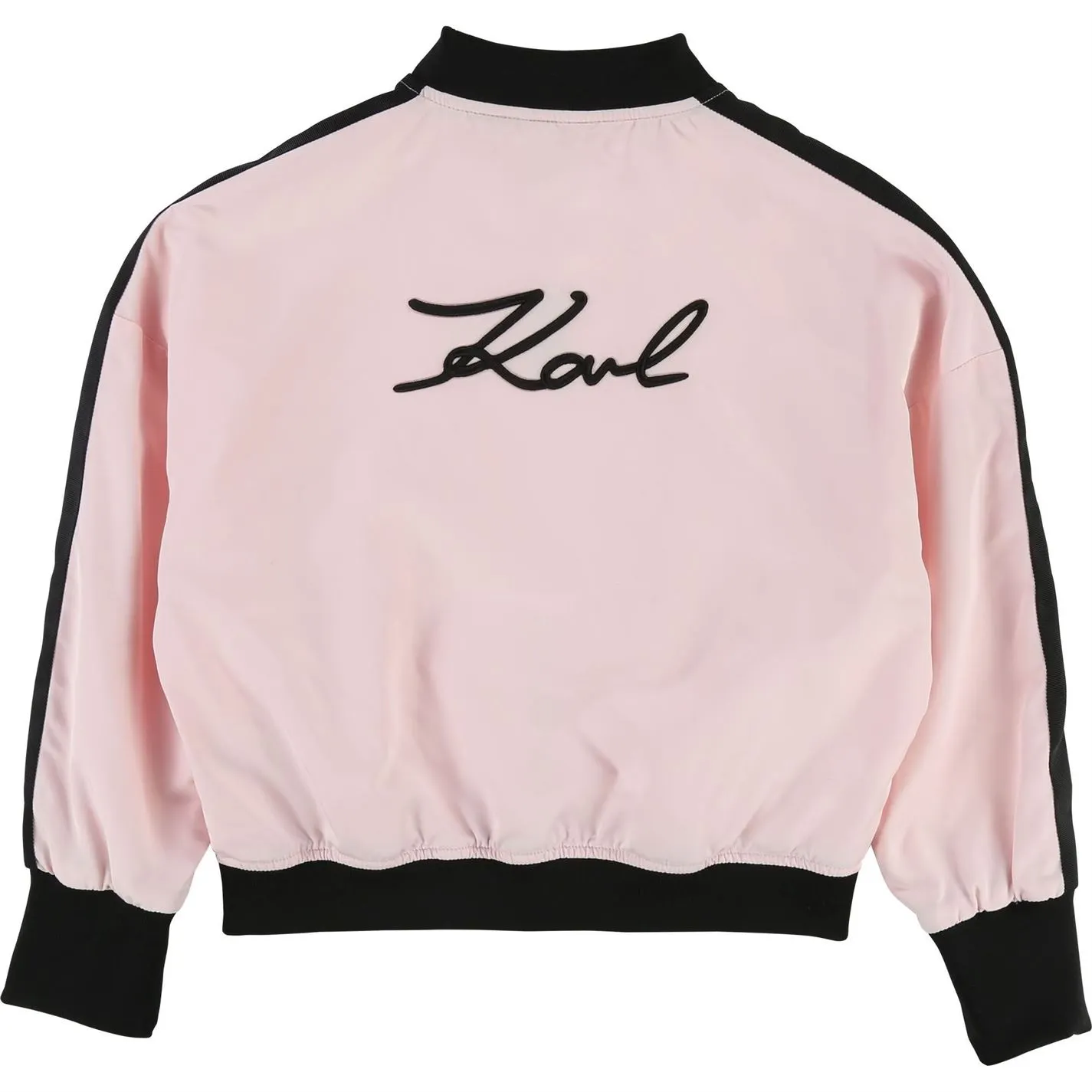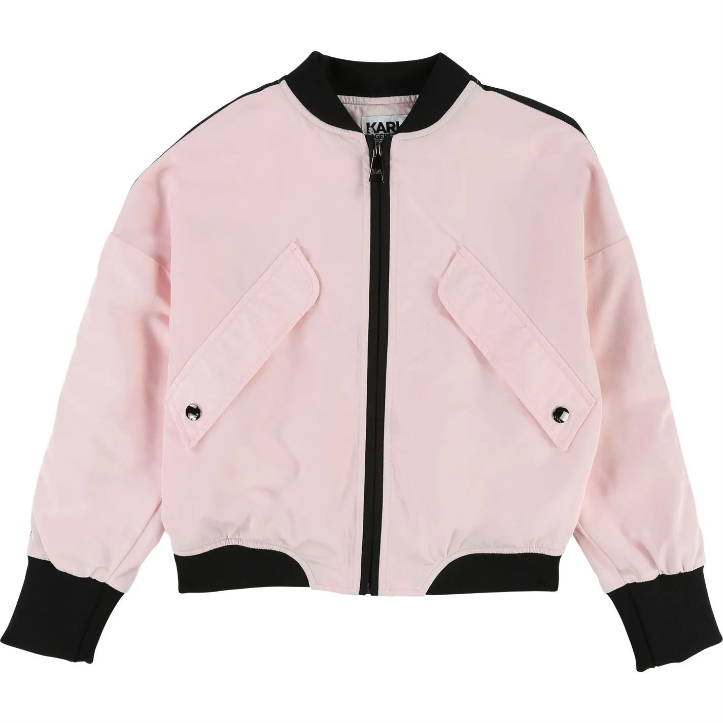 Pull together wintertime looks for your young girl without comprising on style courtesy of the Karl Lagerfeld long-sleeved jacket. Fully lined to keep her comfortable throughout the day, this bomber jacket comes constructed in a sateen-effect fabric and features contrasting details at the collar, sleeves and hem for an edgy aesthetic. Given a dose of designer appeal thanks to the designer?s signature on the back, it makes a machine-washable wardrobe staple your mini fashionista will layer over a myriad of outfits. Pair with matching separates and seal off her ensemble by adding a durable pair of low-top trainers as she ventures around with friends.