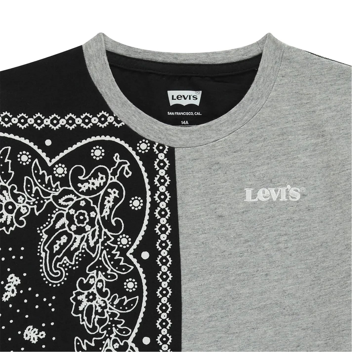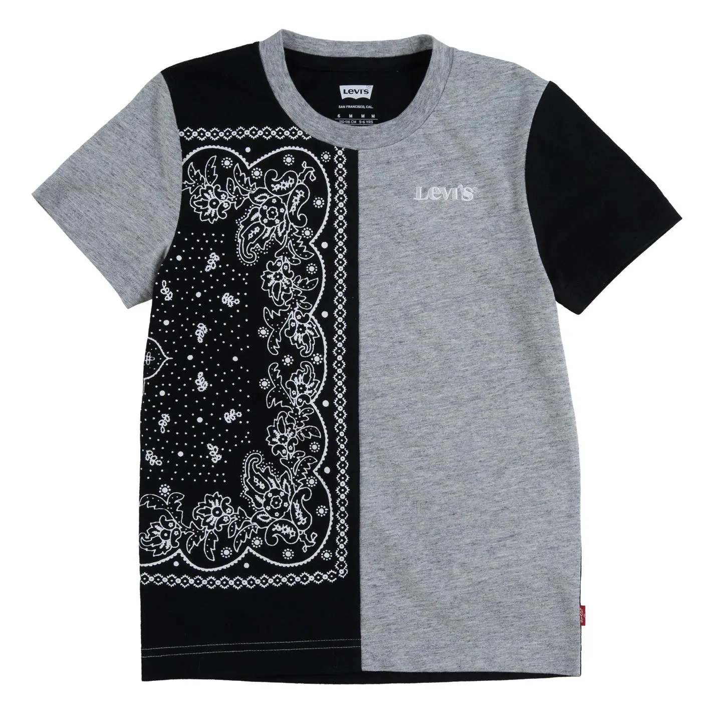 Create a contrast in your little ones tee rotation with the C/B T-Shirt from Levis. Crafted in a regular fit with a soft cotton, this top is cut with a ribbed crewneck, an open hemline and short sleeves with open cuffs. The T-Shirt is based with a solid block colour, further emphasised by the contrasting darker panel, which is decorated with a bandana styled print.