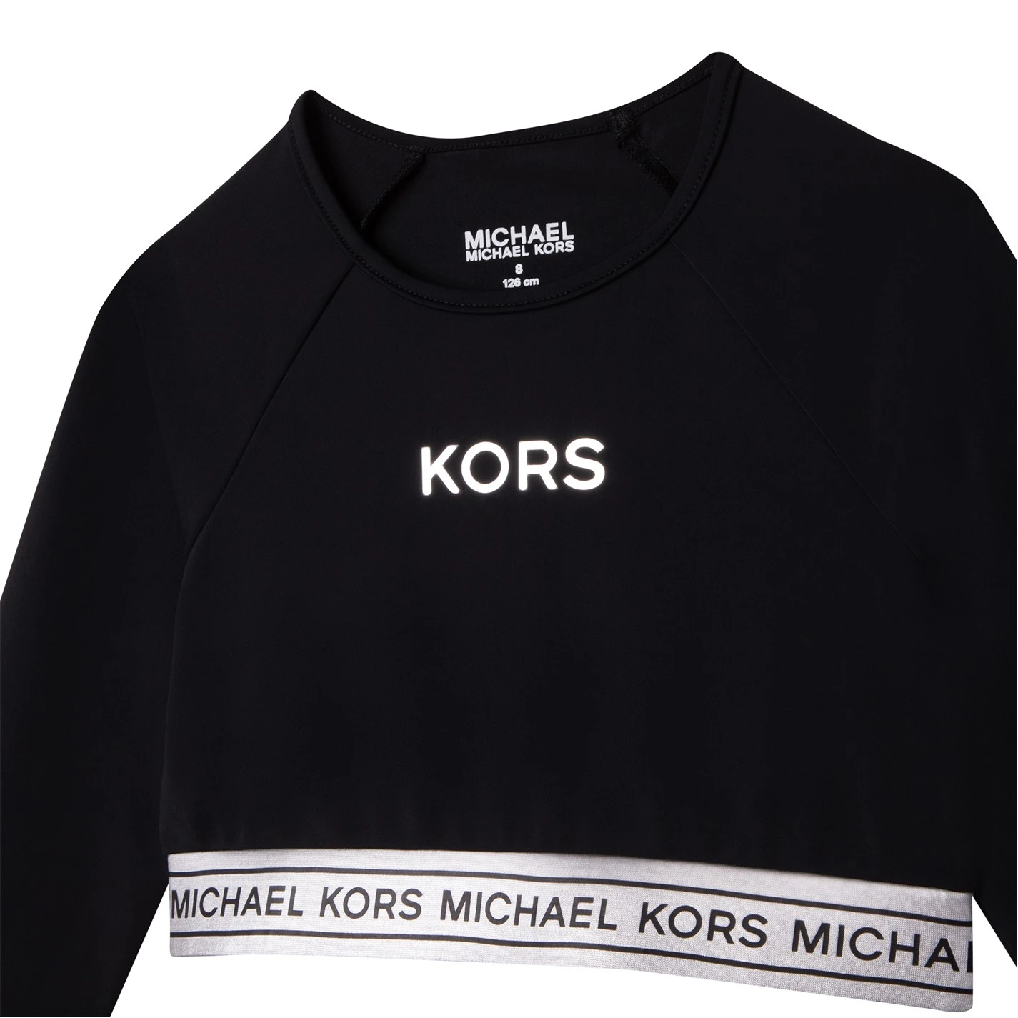 Update your collection with this Michael Kors Long Sleeve Crop T Shirt. Crafted with long sleeves and a ribbed crew neckline for a classic look, it features elasticated hems for a comfortable fit. This t shirt is a solid colouring throughout designed with a signature logo and is complete with Michael Kors branding.