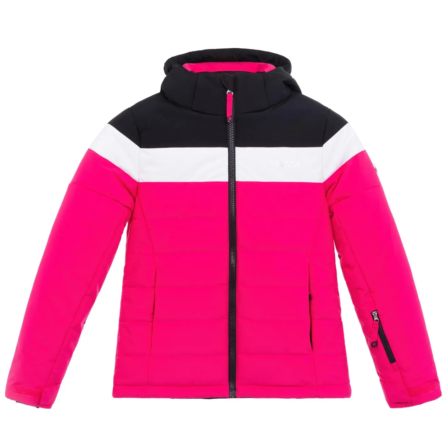 This Nevica Chamonix Jacket is crafted with front zip fastenings and long sleeves with inner cuff. This insulated jacket with angled baffles brings additional warmth when worn in colder climates. It features a detachable hood and branding to the sleeve and is complete with ski features that include ski pass pocket and snow skirt.