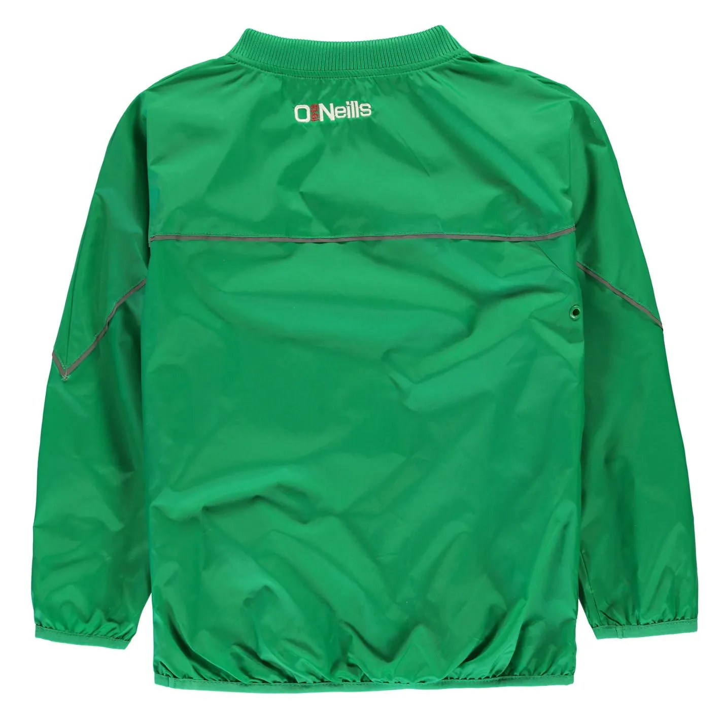 Sporting the Fermanagh GAA county crest this nylon training top is water proof and has a polyester meshing inside. It also comes with elasticated cuffs and waistband for a snug fitting, a ribbed trimmed v-neck collar, and 2 open pockets on the side for storing small items in.