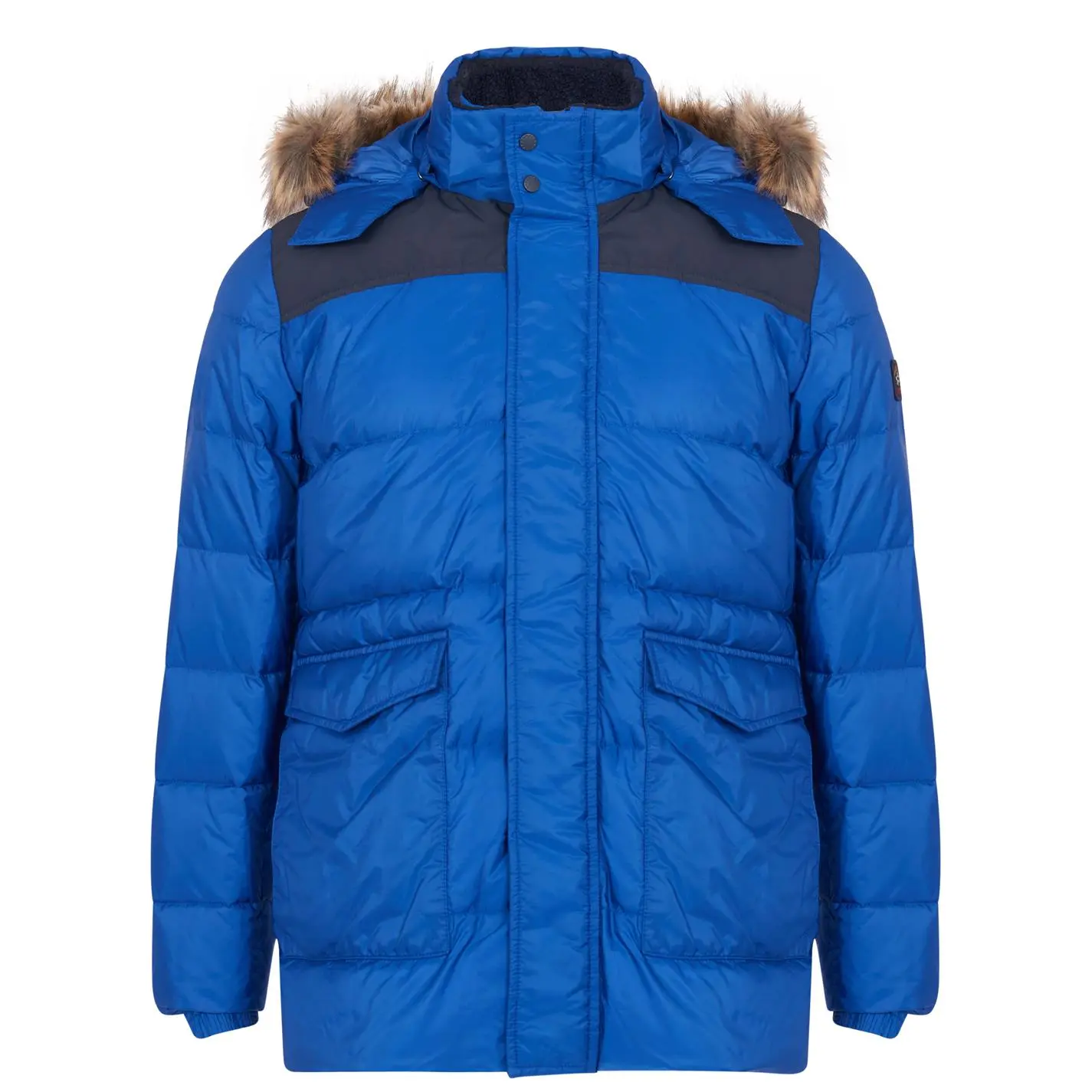Elevate your collection with this Paul and Shark Woven Jacket. Crafted with full zip fastening and long sleeves for a secure fit, it features a faux fur trimmed hood and two hand pockets for a classic look. This jacket is a solid colouring throughout designed with a signature logo and is complete with Paul and Shark branding.
