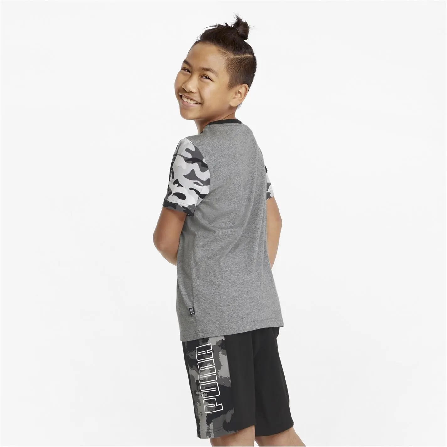 Keep your little one’s casual with the Essentials Camouflage Print T-Shirt from Puma. Crafted from a lightweight cotton fabrication, this regular fit silhouette styles a camouflage print to the upper adorned with a Puma branded logo. Cut with a crew neckline, short sleeves and straight hemline, this t-shirt is perfect to style with joggers and trainers for a daytime look.