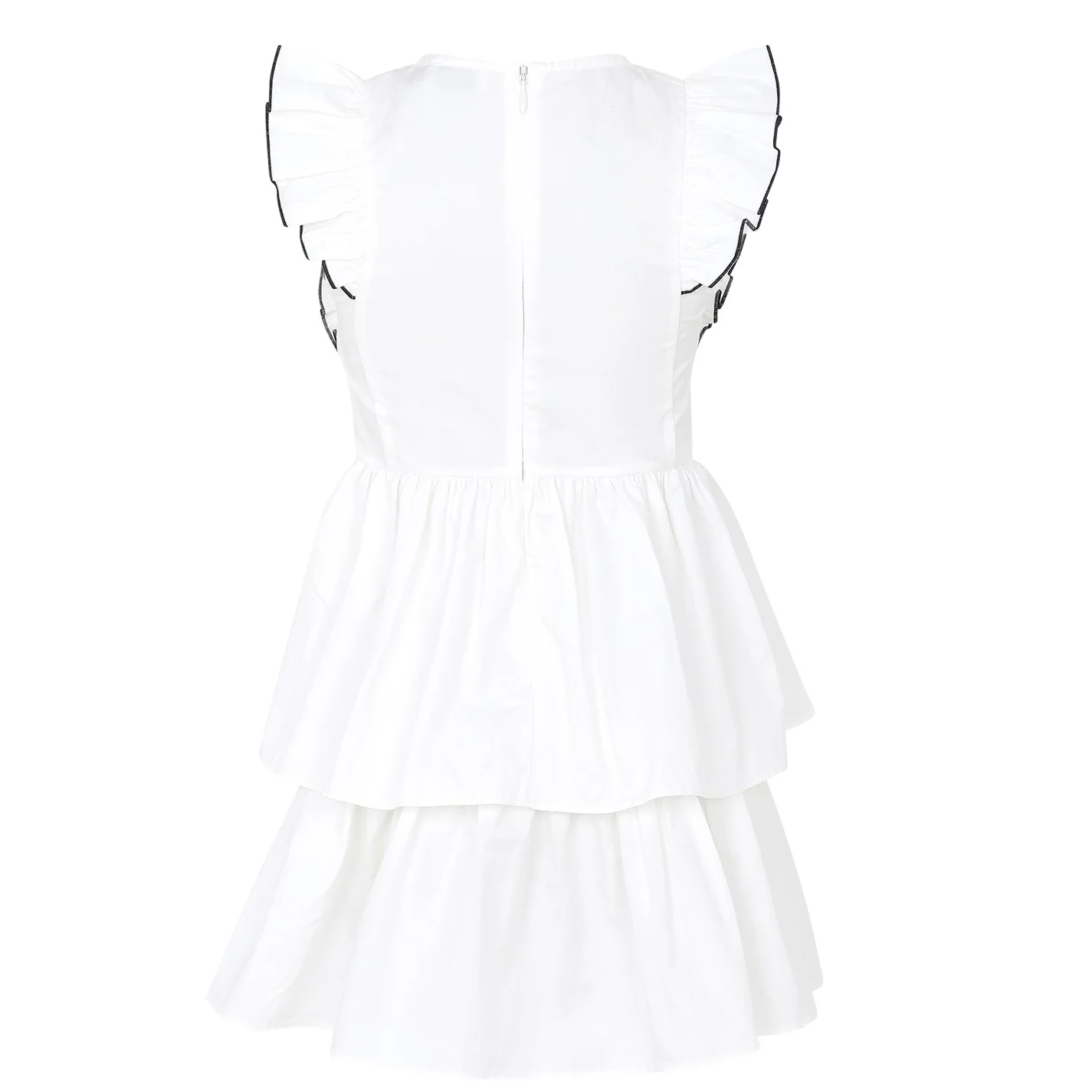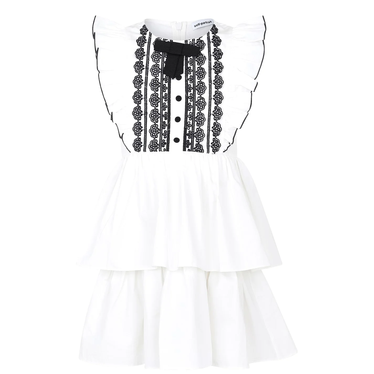 Refresh your little girl’s collection with this Contrast Bib Dress from self Portrait. Constructed from a soft cotton fabrication, this top details contrasting stitching to a solid colour background for a bold statement look. Cut in a classic silhouette, this top details an frill detailing, short sleeves and buttons to the front.
