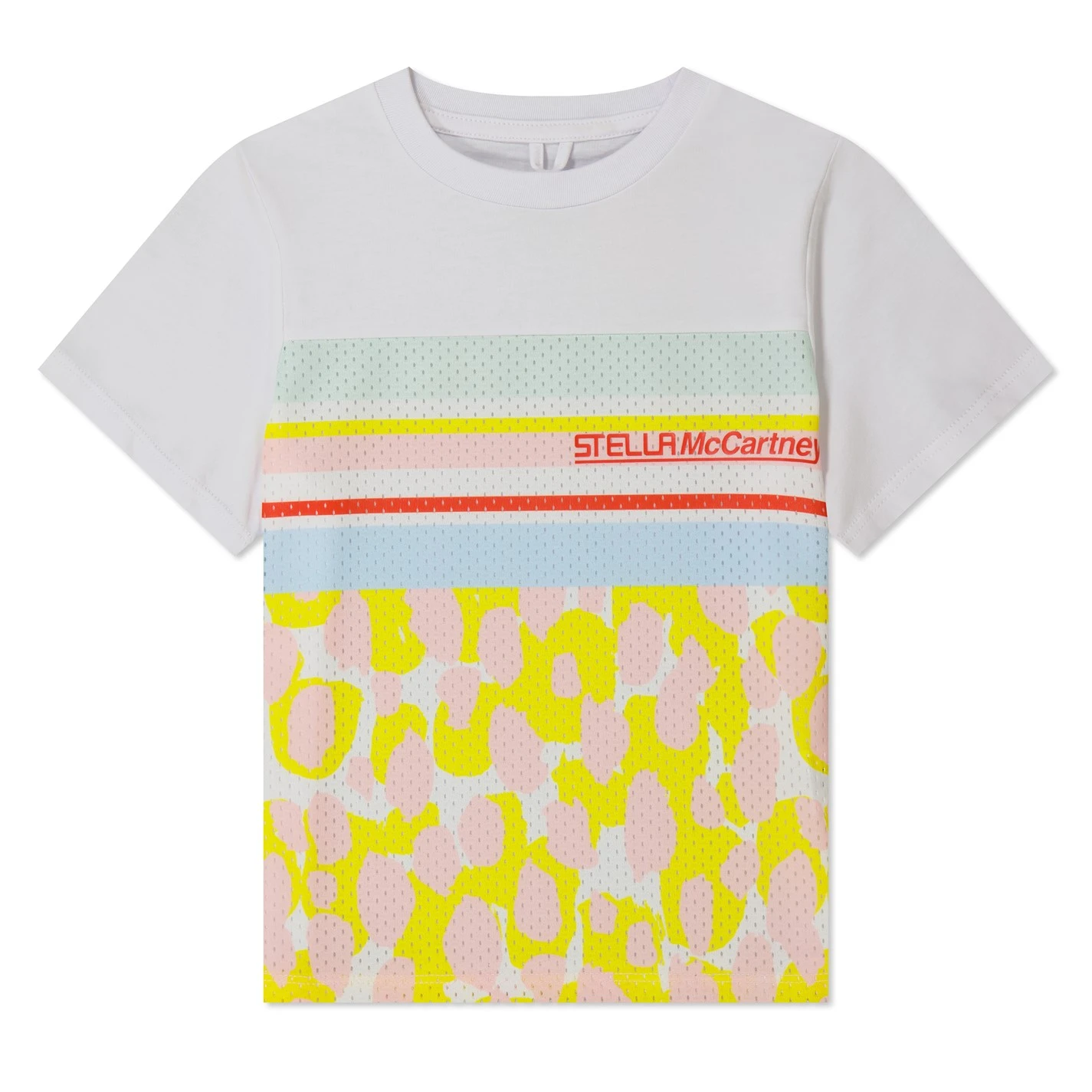 Treat your little one to the Leopard Print Sports Top from British luxury icon Stella McCartney. Expertly crafted in a combination of cotton and polyester, this classic silhouette has been updated for a contemporary audience with a ribbed crew neck, perforated panelling to the front, short sleeves and a straight hem for comfort. The front pannelling is adorned in a soft pastel colourway defined with a leopard print pattern while the Stella McCartney branding completes this high-end look. Machine washable at 30 degrees – always refer to and follow washing instructions for best wear.