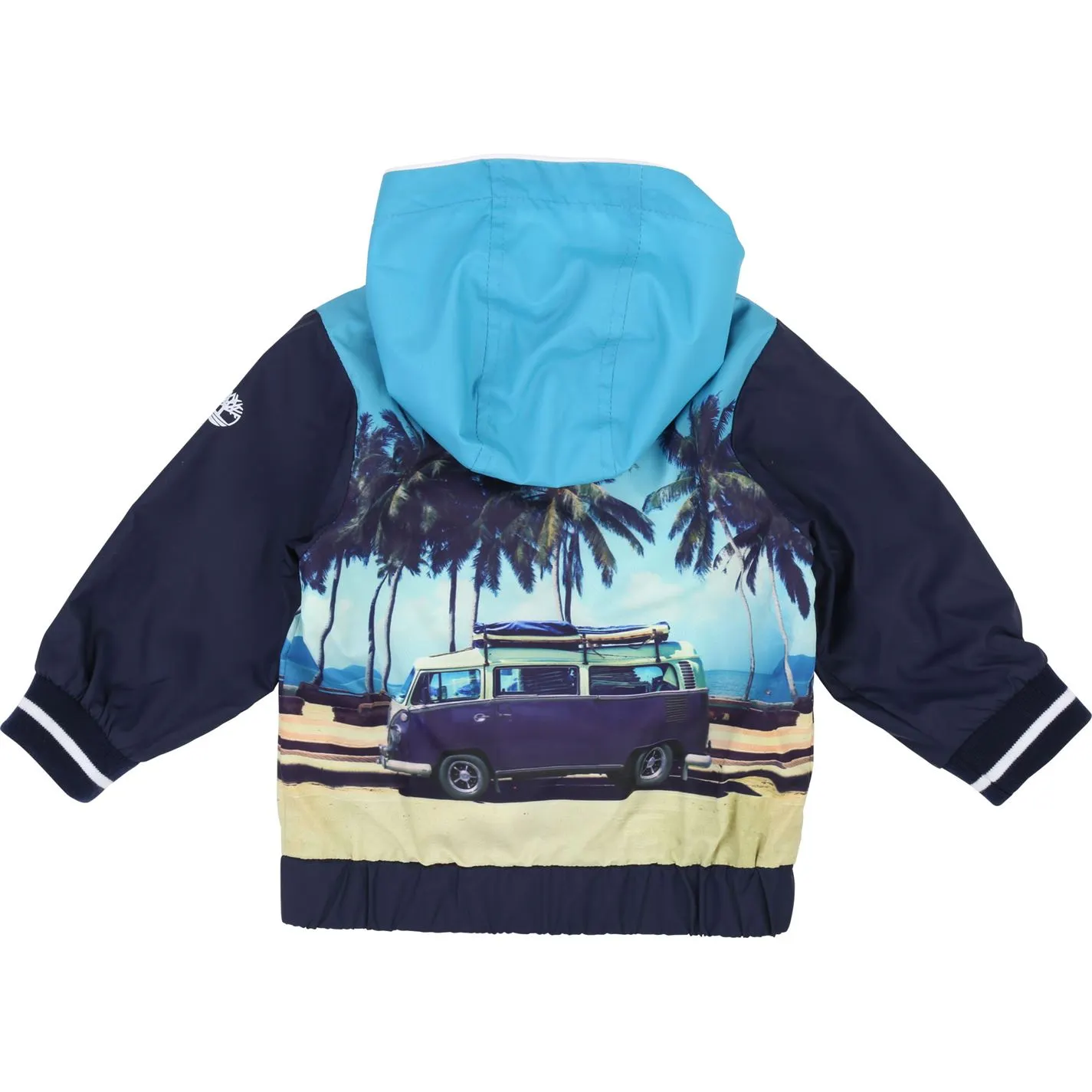 Water-repellent printed coated nylon hooded windbreaker, mesh lining + Timberland logo.