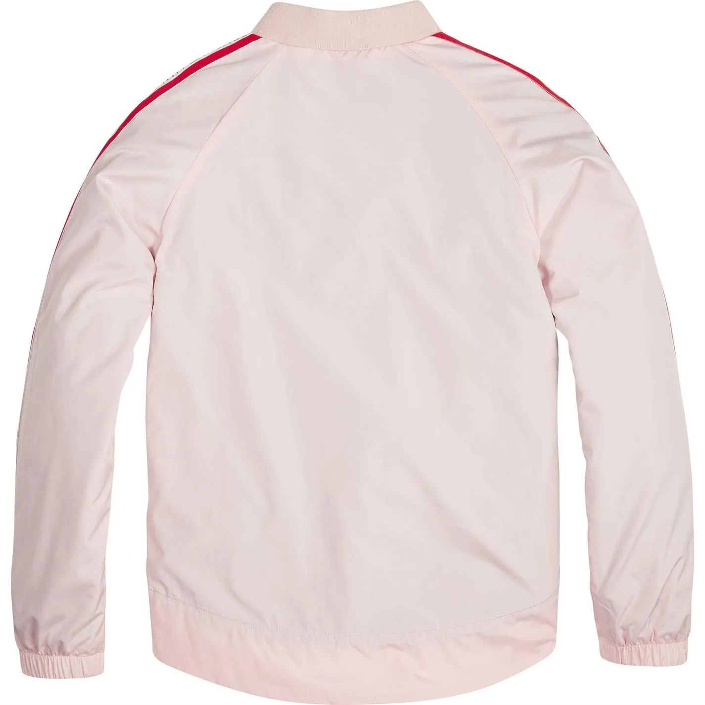 Keep your little one enveloped on a chilly day with this bomber jacket by Tommy Hilfiger. Crafted from a smooth fabric, this piece features a full linear zip fastening, elasticated cuffs and hem promising comfort. Embossed with the signature brand labelling and finished with a kangaroo pocket, this jacket teams well with shorts and sandals to achieve a cute winter look.