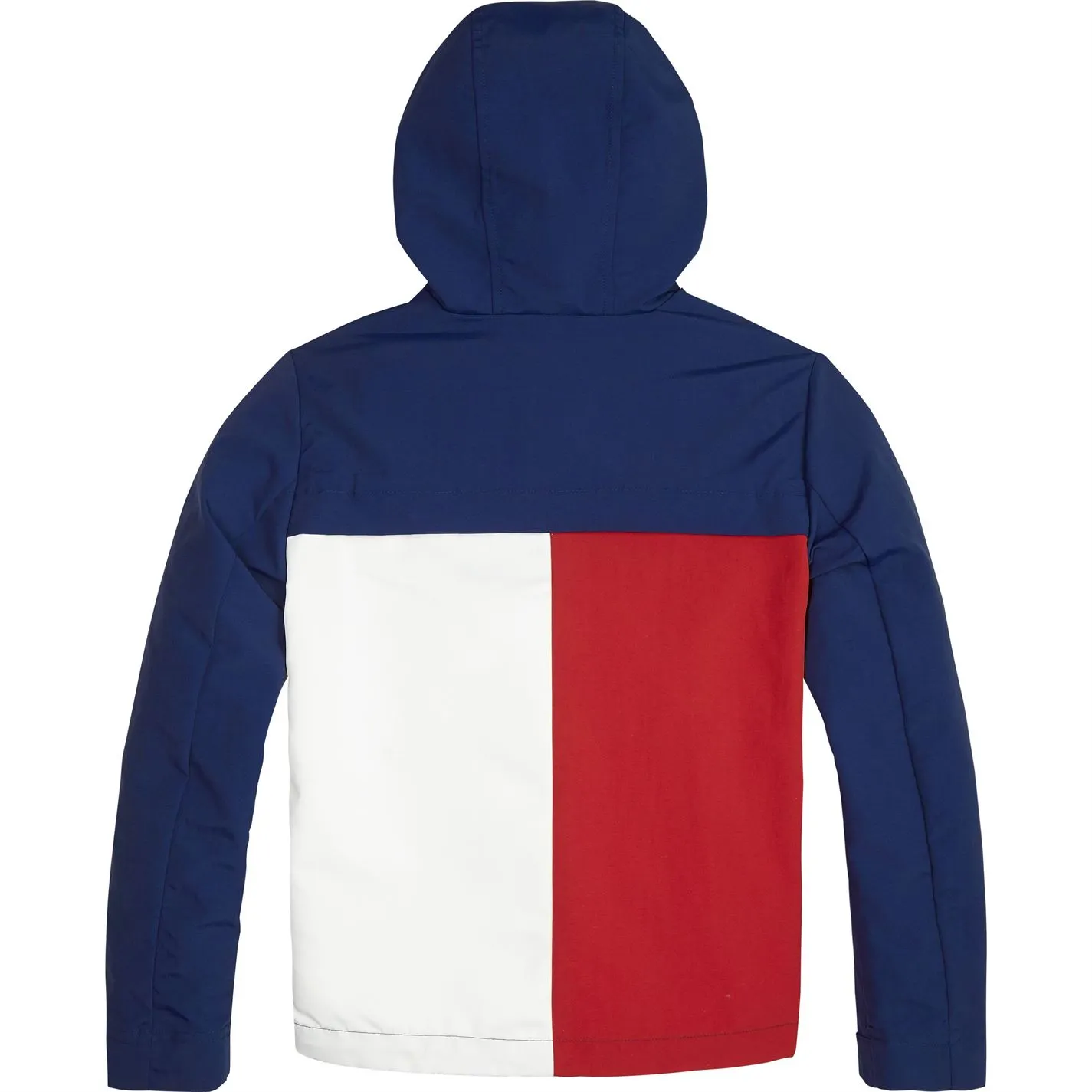 A perfect balance of practicality and sartorial prowess, this packable hooded jacket by Tommy Hilfiger is truly modern. Crafted from a smooth pure nylon ottoman fabric, this long-sleeve profile features Velcro cuff straps and logo tape inside the front zip fastening for utmost style and comfort. Decorated with contrast colour-block pattern at the back and angled pockets on the front to lend a designer flourish, this jacket can be teamed with a printed t-shirt and jeans for a dapper mini-me ensemble.