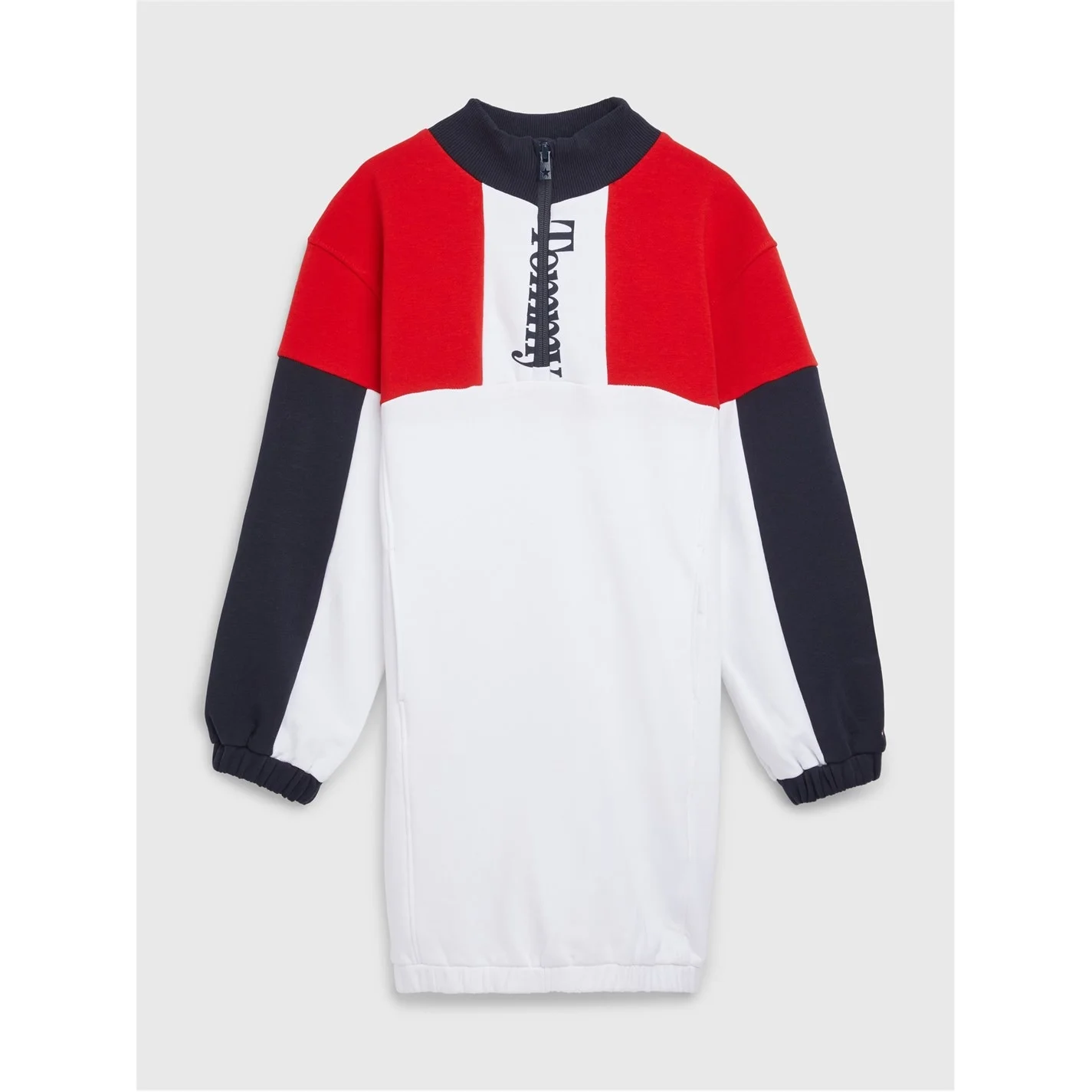 Elevate your little one’s casual dress with this Colourblock Sweatshirt Dress from Tommy Hilfiger. Crafted from a soft cotton blend fabrication with an loop back fleece lining, this silhouette features a funnel neckline, long sleeves, a half zip fastening, a straight hem and elasticatesd trims for comfort. The design is defined with the Tommy Hilfiger colourway and the brand logo printed across the zip fastening. Shell: 70% cotton, 30% polyester. Rib: 96% cotton, 4% elastane. Machine washable at 30 degrees – always refer to and follow washing instructions.